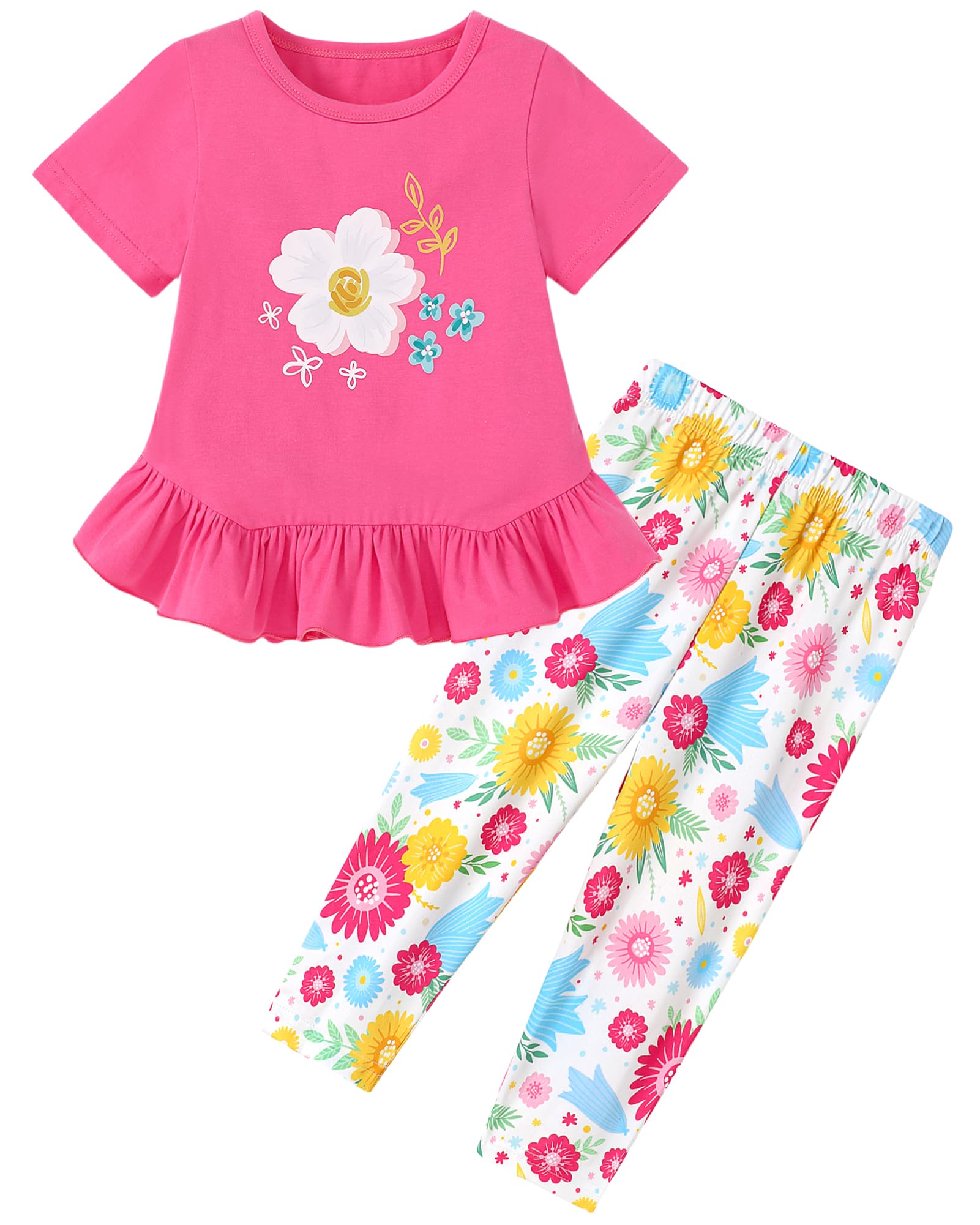 CARETOO Toddler Girl Clothes 2pcs Girl Spring Summer Outfit Ruffle Hem Short Sleeve Top and Floral Capri Pant 2-7 Years|Clothing