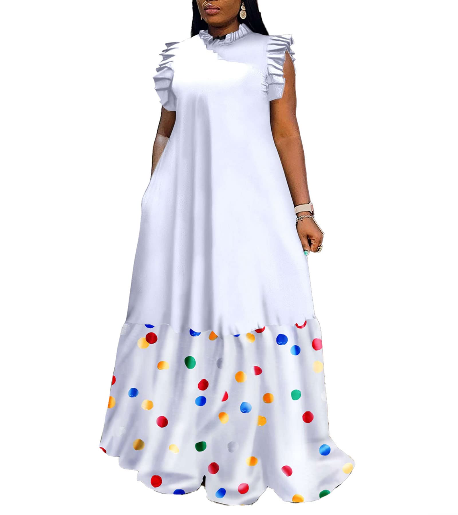 Memoriesea Women's Elegant Sleeveless High Neck Tie Cocktail Wedding Party Maxi Dress|Clothing