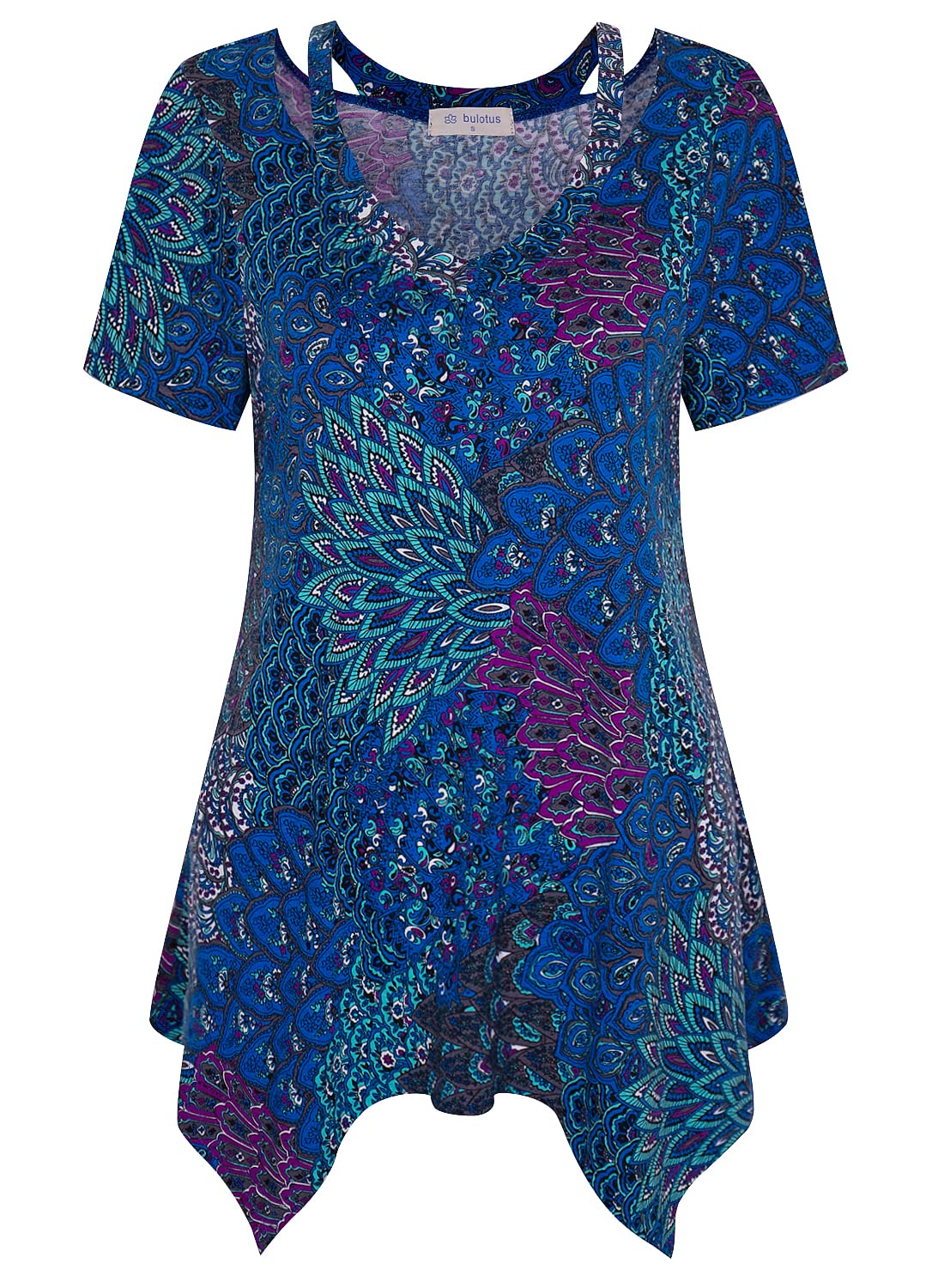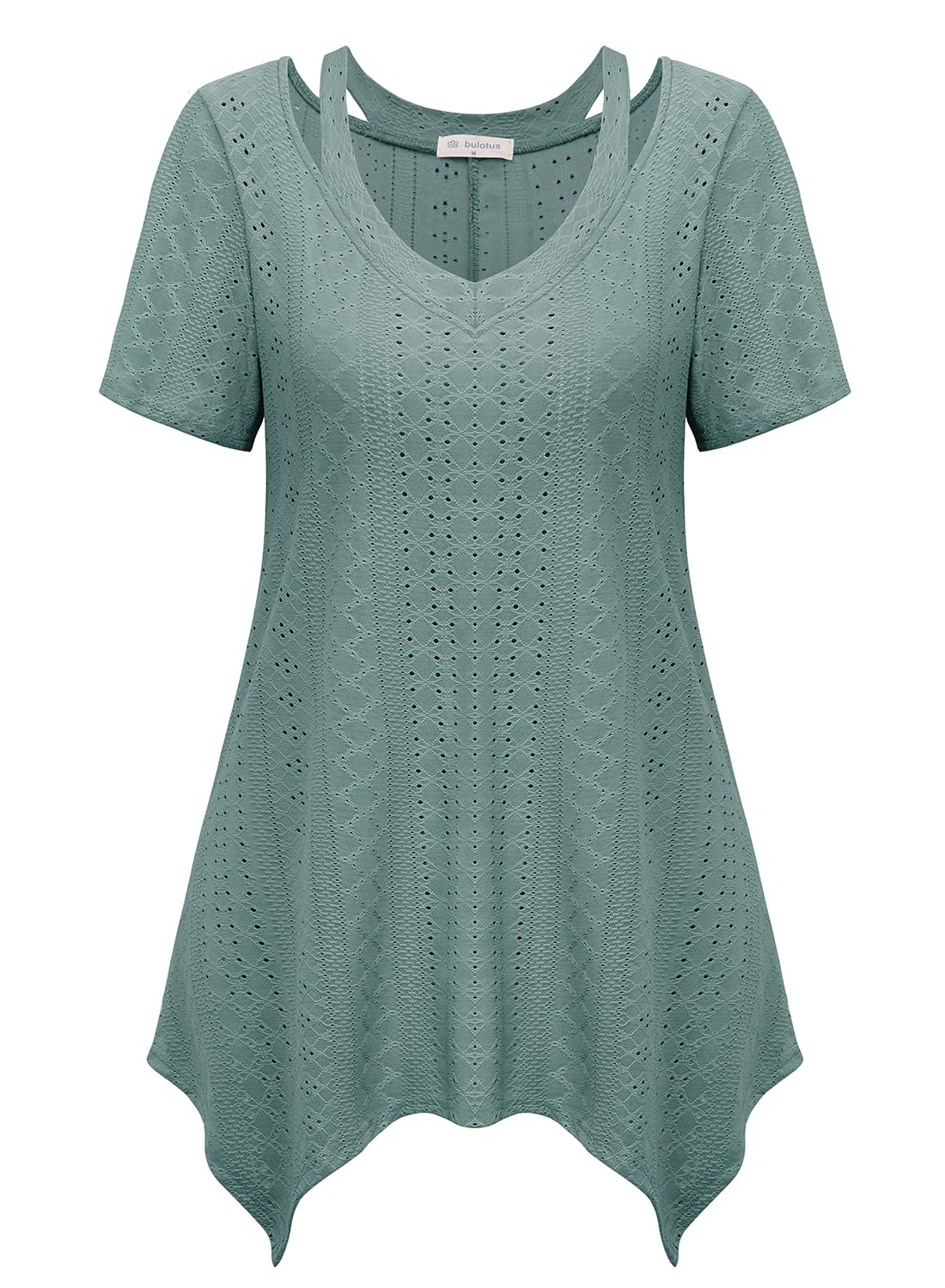 Bulotus Womens Summer Short Sleeve Tunic Dressy Casual Spring 3 4 Sleeve Shirt Cut Out V Neck Long Tops Beach Vacation|Clothing