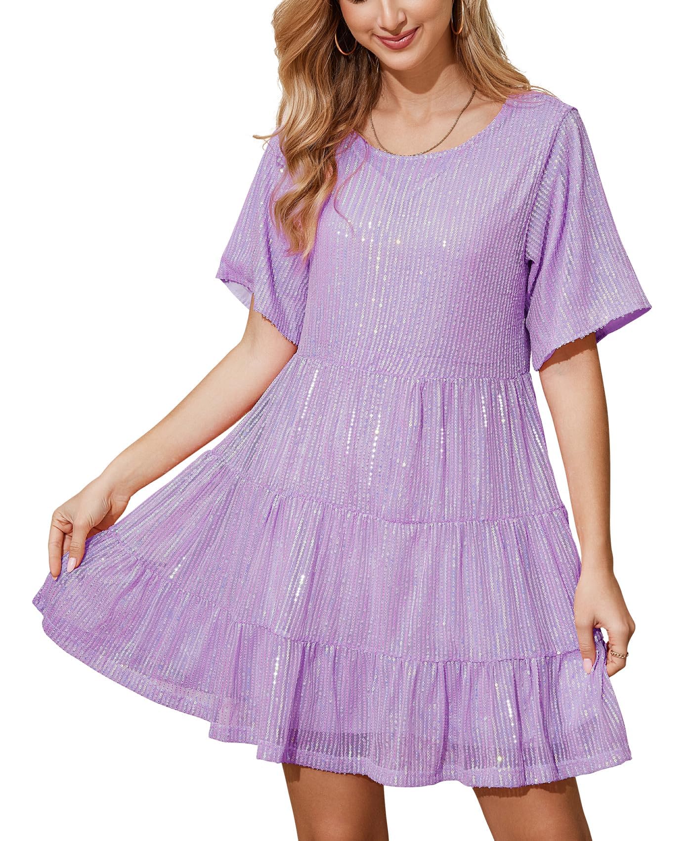 MAYSTEPPE Sparkly Glitter Dress, Sequin Babydoll Summer Dress Short Flowy Tiered Tunic Dress for Women Party Club Night|Clothing