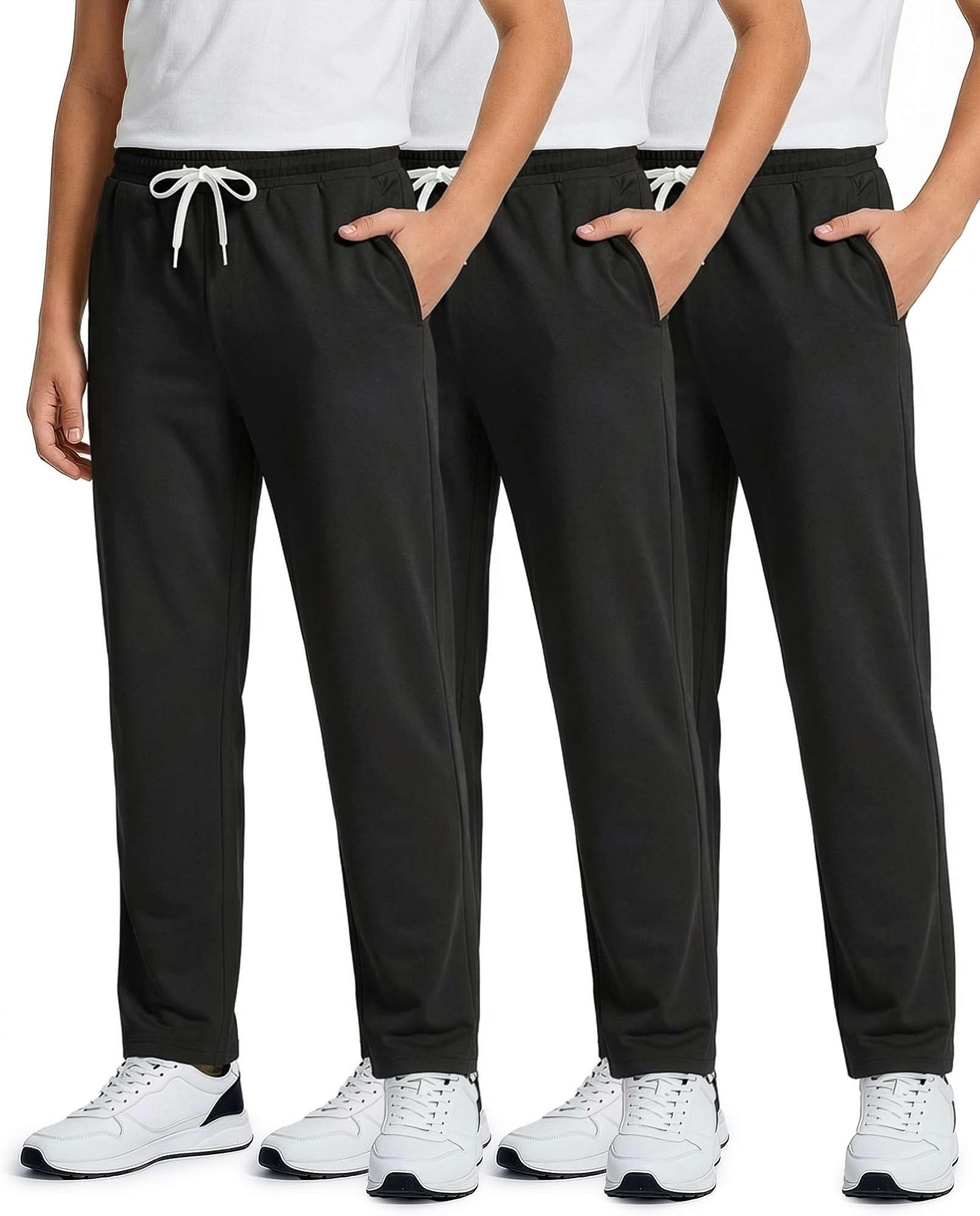Real Essentials 3 Pack: Boys' French Terry Open Bottom Sweatpants Sweats for School Kids Teens with Pockets (Size 4-18)|Clothing