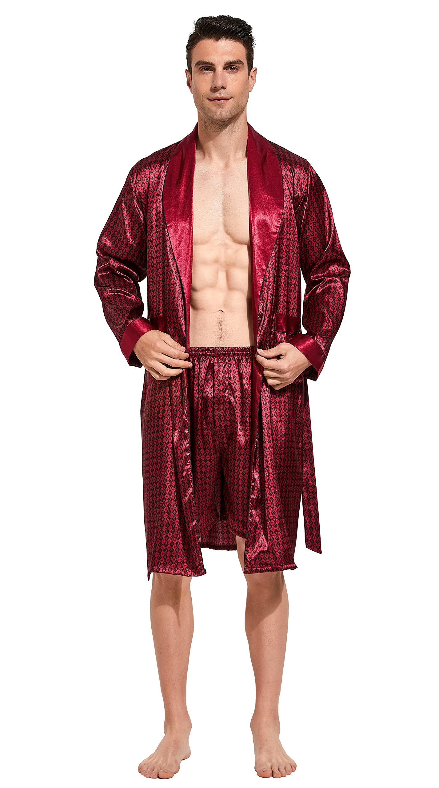 Tony & Candice Men's Satin Robe Lightweight Long Sleeve Silk Kimono Bathrobe with Shorts Set Sleepwear|Clothing