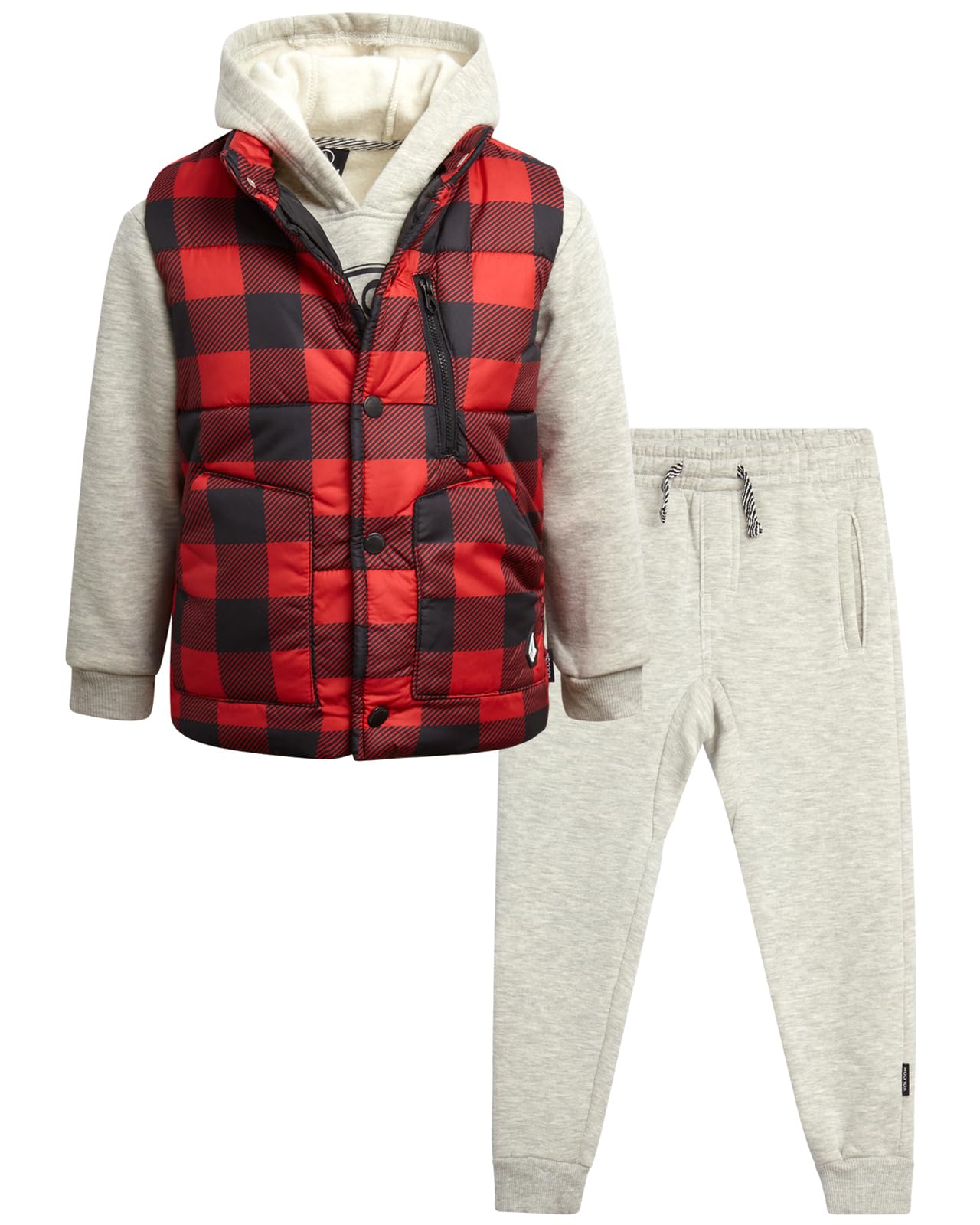 Volcom Boys Outerwear Set - 3 Piece Boys' Fashion Activewear Set Puffer Vest, Hoodie Sweatshirt and Jogger Pants (12M-7)|Clothing