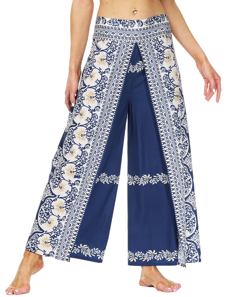 Ainuno Boho Pants Wide Leg Palazzo Pants with Slits for Women Flowy Hippie Pant Thin|Clothing