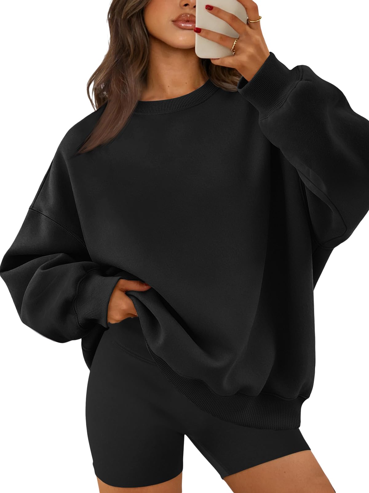ATHMILE Oversized Sweatshirt for Women Crewneck Fleece Long Sleeve Pullover Hoodies Tops Fall Fashion Outfits Clothes|Clothing