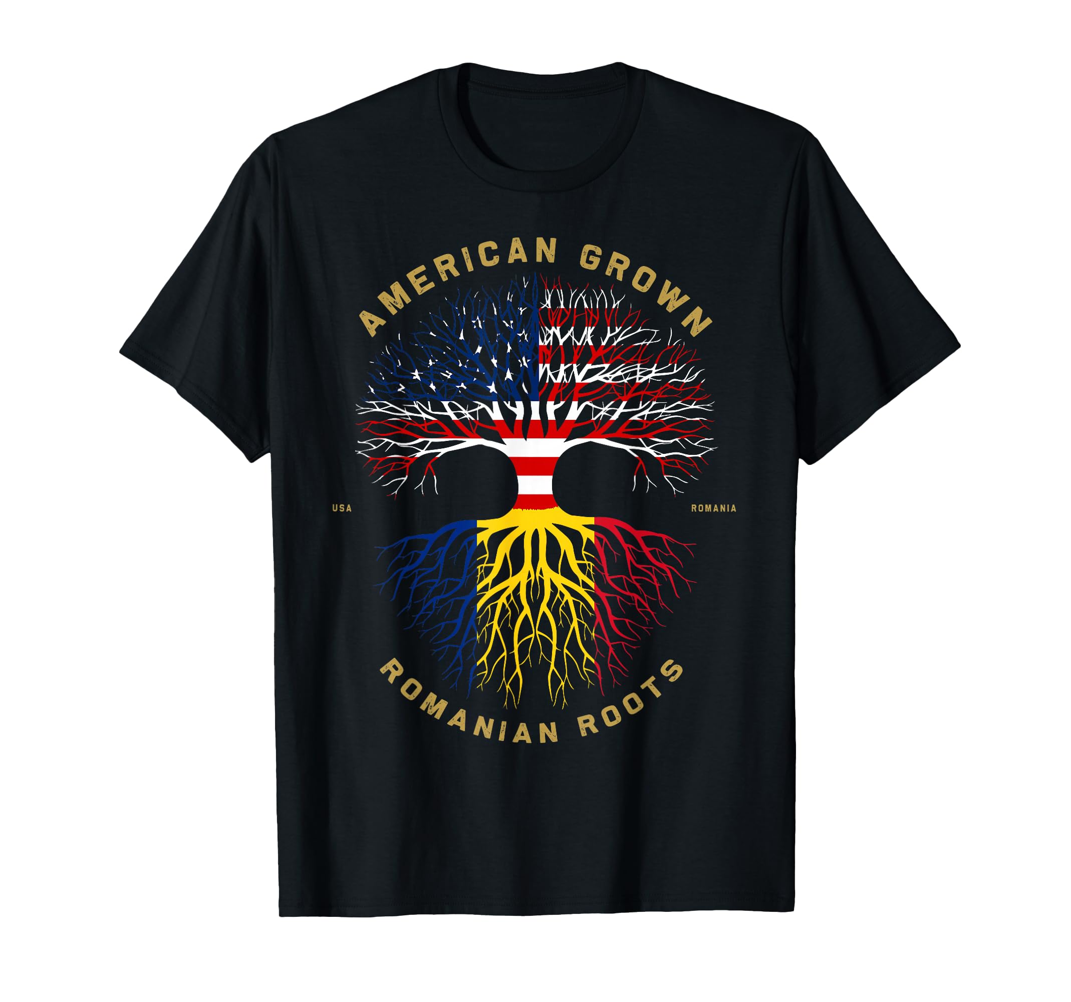 American Grown with Romanian Roots Tree USA Flag Gift T-Shirt|Clothing