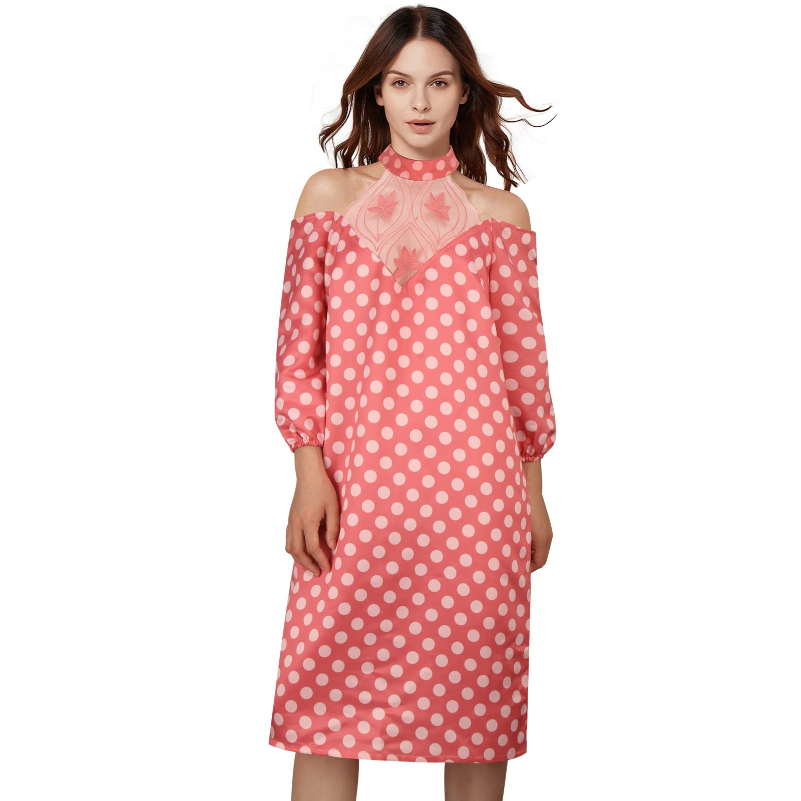 Womens Pink Cosplay Costume 80s Movie Prom Dress Satin Polka Dot Dress for Halloween|Clothing
