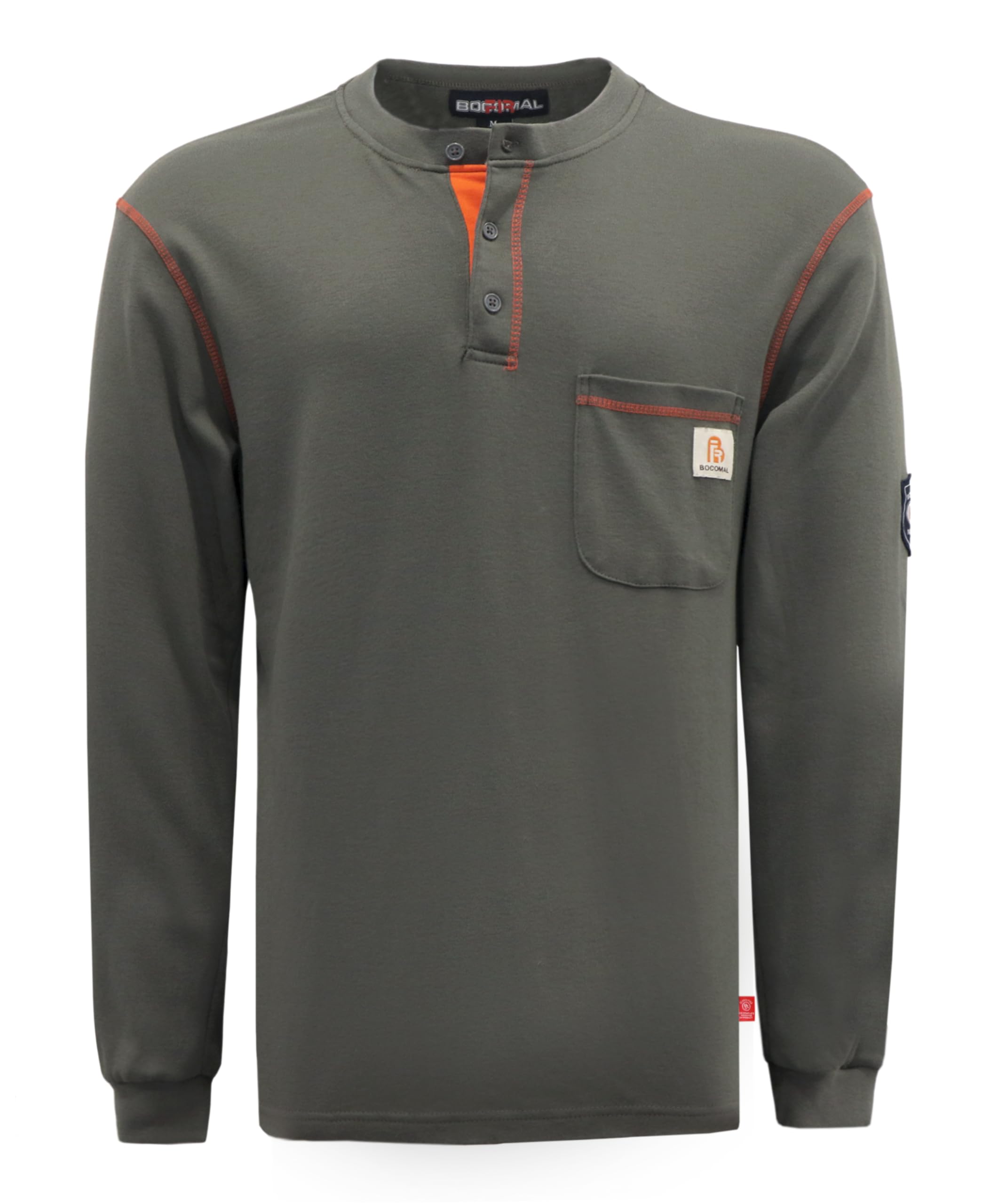 BOCOMAL FR Shirts Flame Resistant Henley Shirt NFPA2112/CAT2 7oz Men's Long Sleeve Fire Retardant Clothing|Clothing