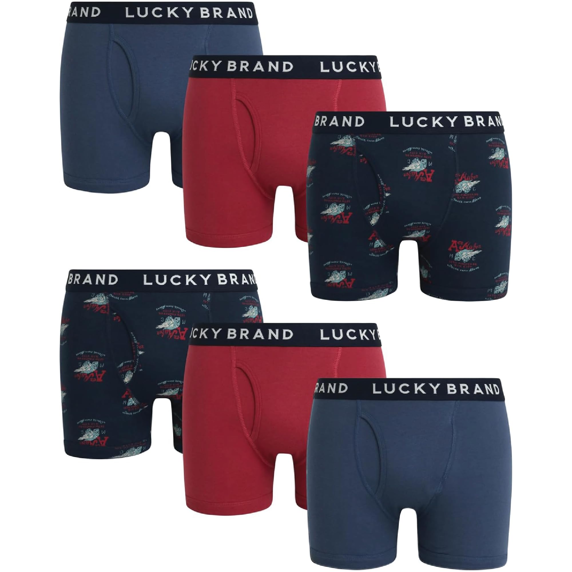Lucky Brand Mens Boxer Briefs - 6 Pack Soft Cotton Boxers for Men with Functional Fly - 4" Inseam Mens Underwear Boxer Briefs|Clothing