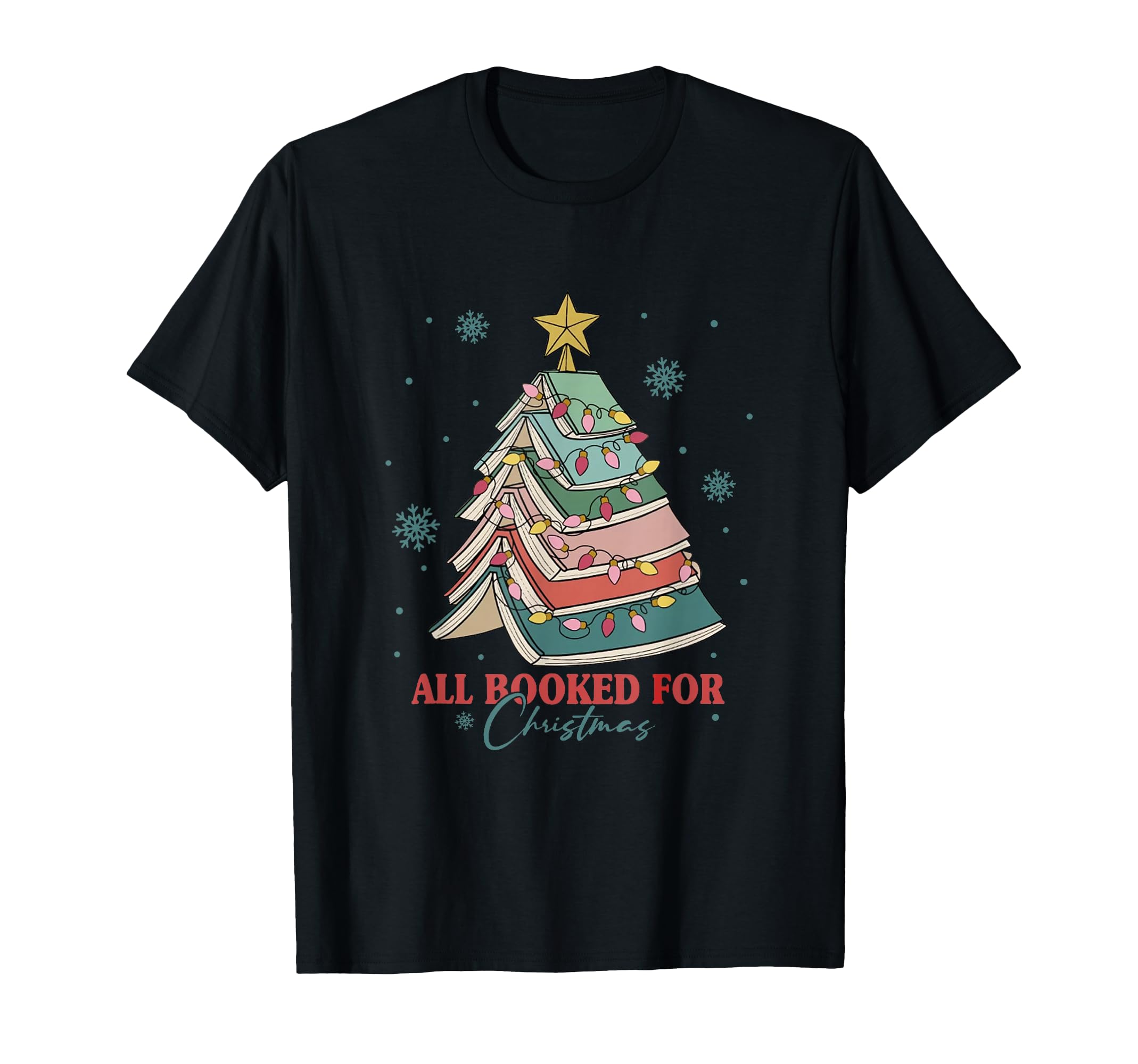 Book Christmas Tree Librarian All Booked For Christmas T-Shirt|Clothing