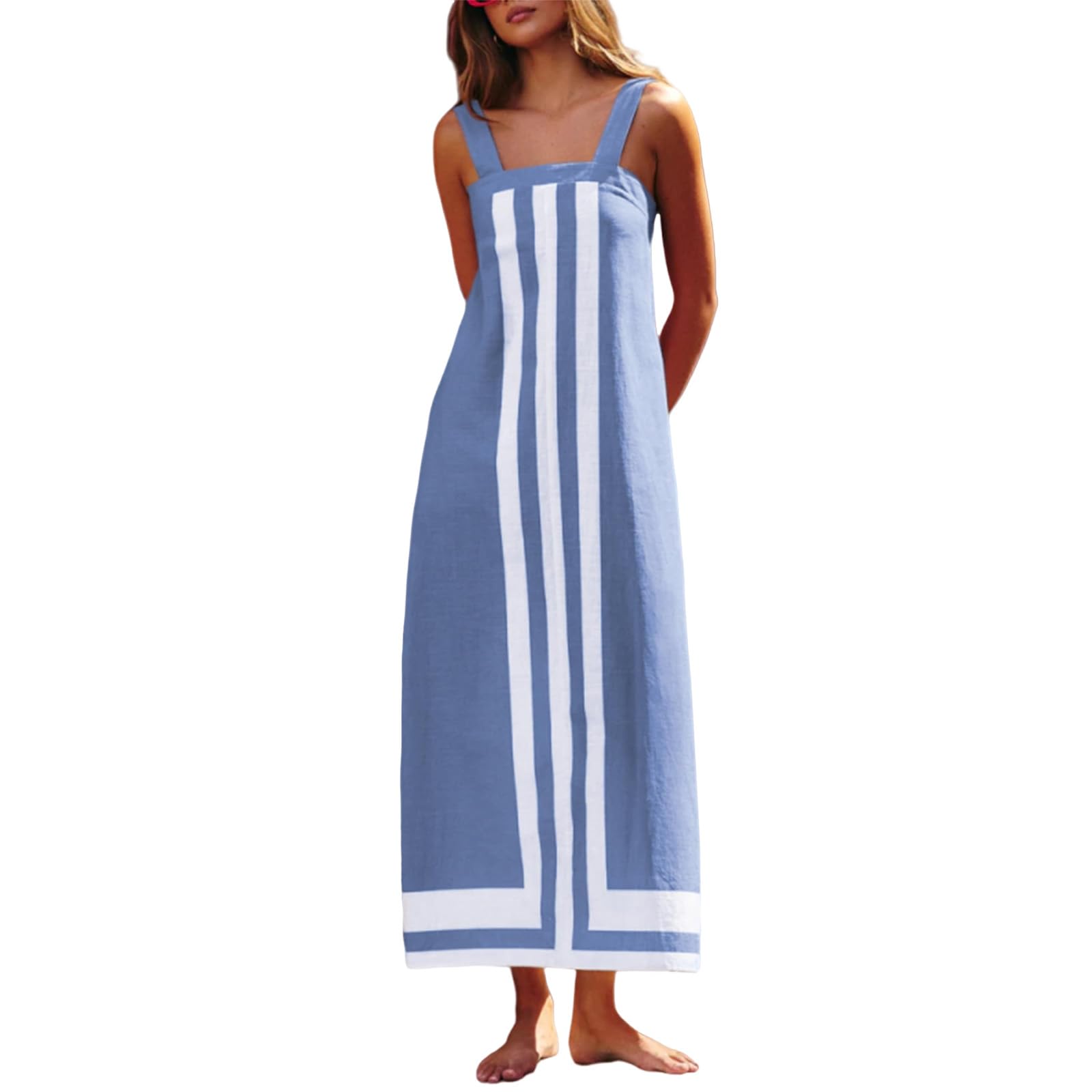 MISFAY Women Summer Spaghetti Strap Button V Neck Sleeveless Causal Beach Cover Up with Pocket|Clothing