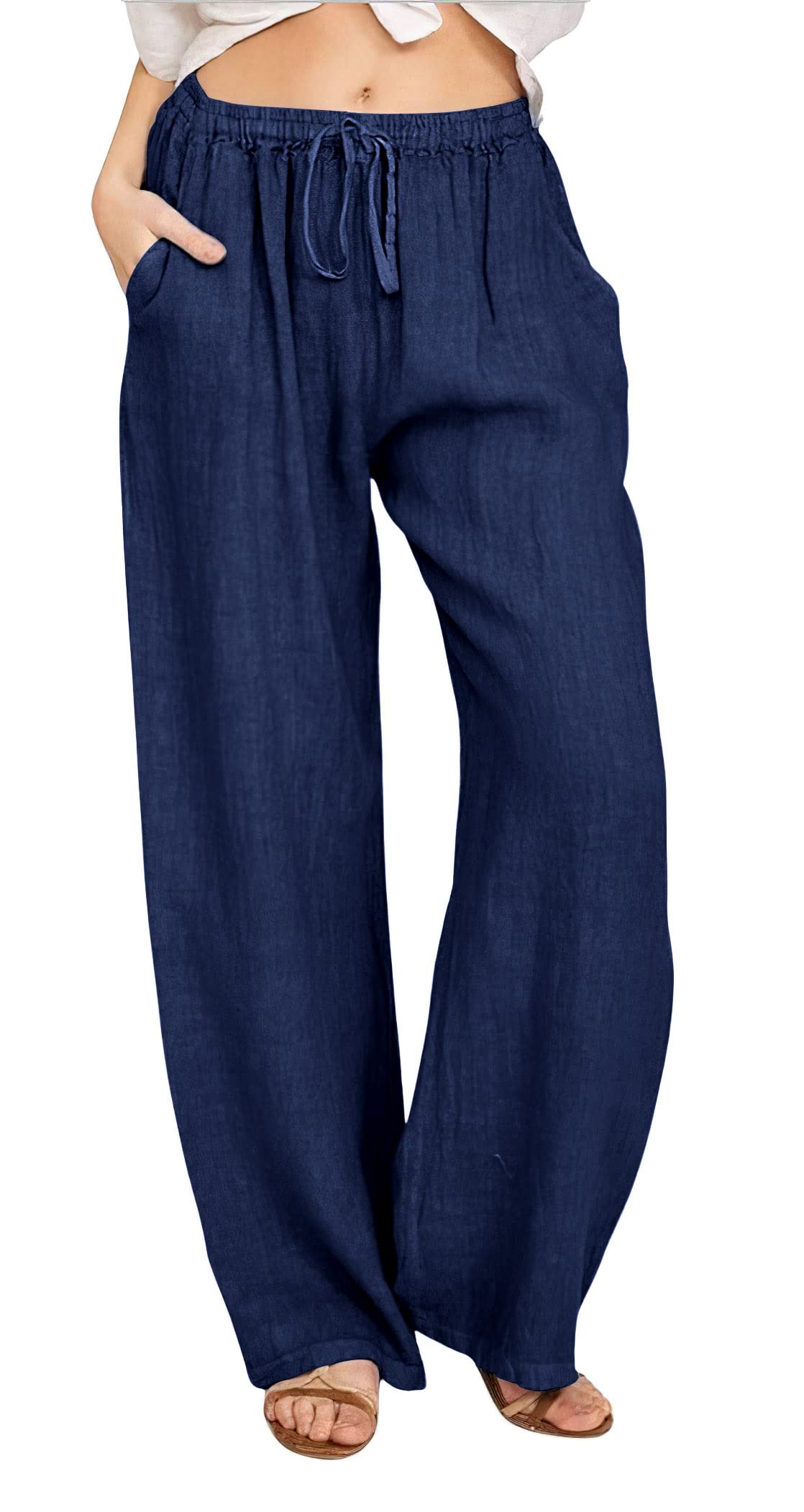 CHARTOU Women's Summer Drawstring Waist Wide Leg Loose Cotton Linen Palazzo Pants|Clothing