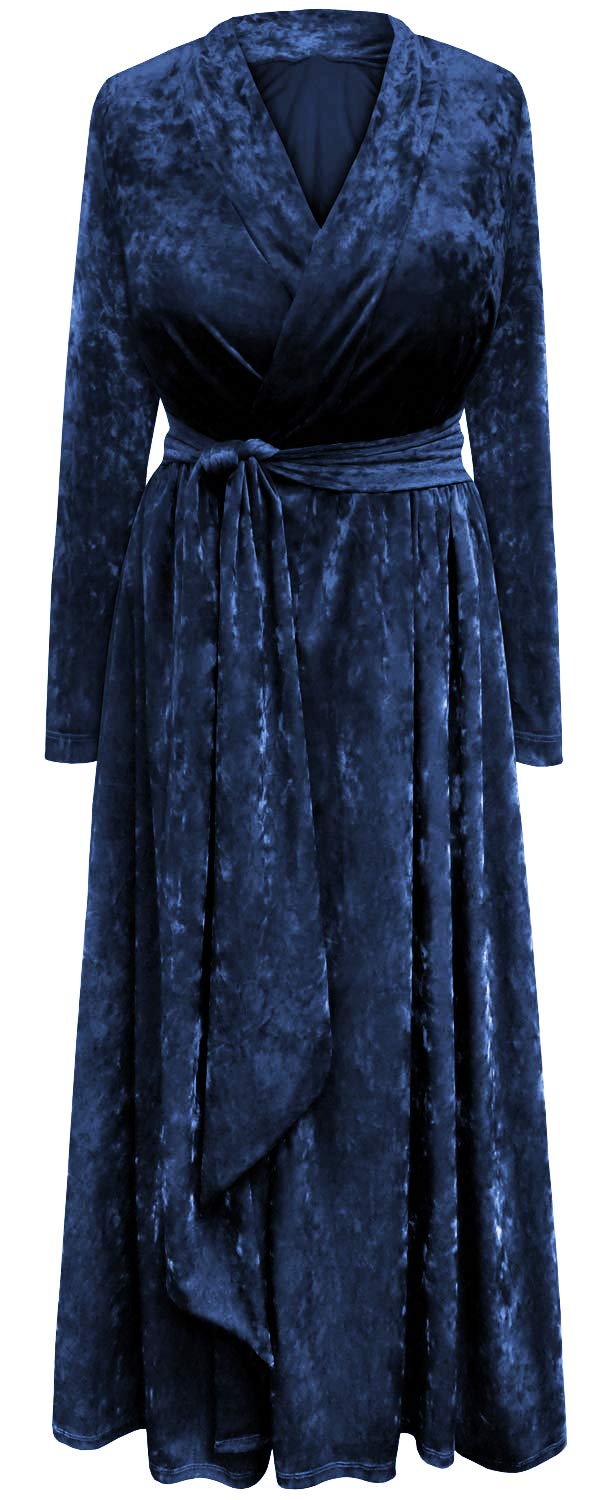 Plus Size Retro Soft Ice Velvet 1930-40's Hostess Dressing Gown Robe w/Attached Belt|Clothing