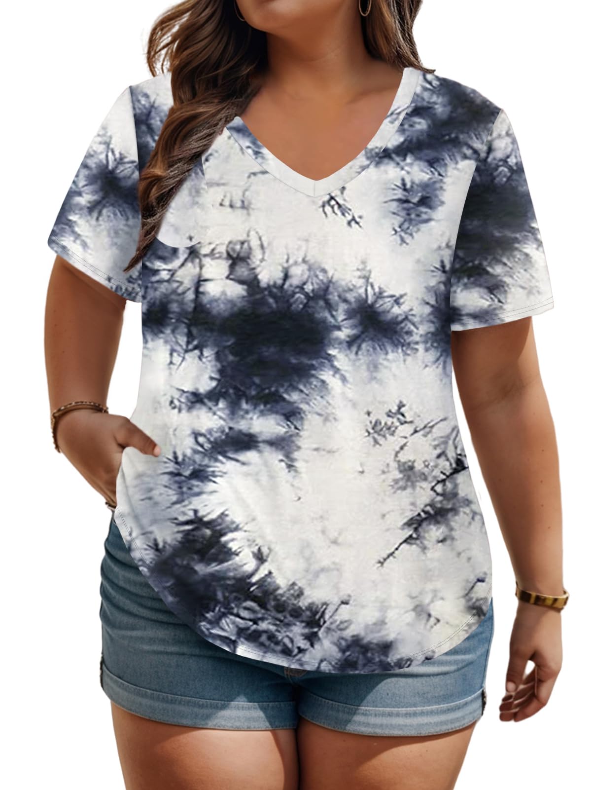 ROSRISS Plus Size Tops for Women Casual Summer T Shirts V Neck Short Sleeve Tunics|Clothing