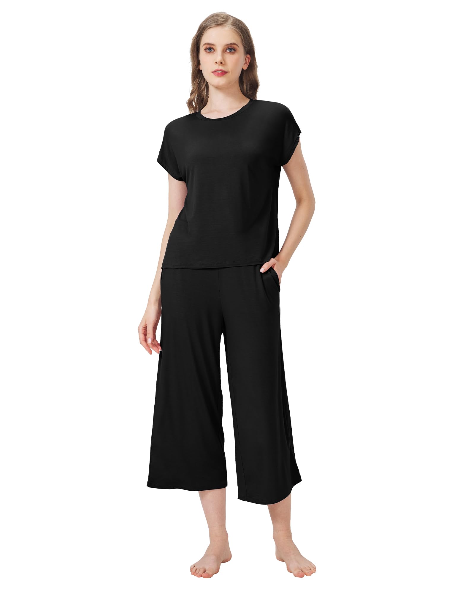 BambooBud Women's Capri Pajama Set Short Sleeve Sleepwear 2 Piece Loungewear Viscose from Bamboo Pjs S-XXL|Clothing