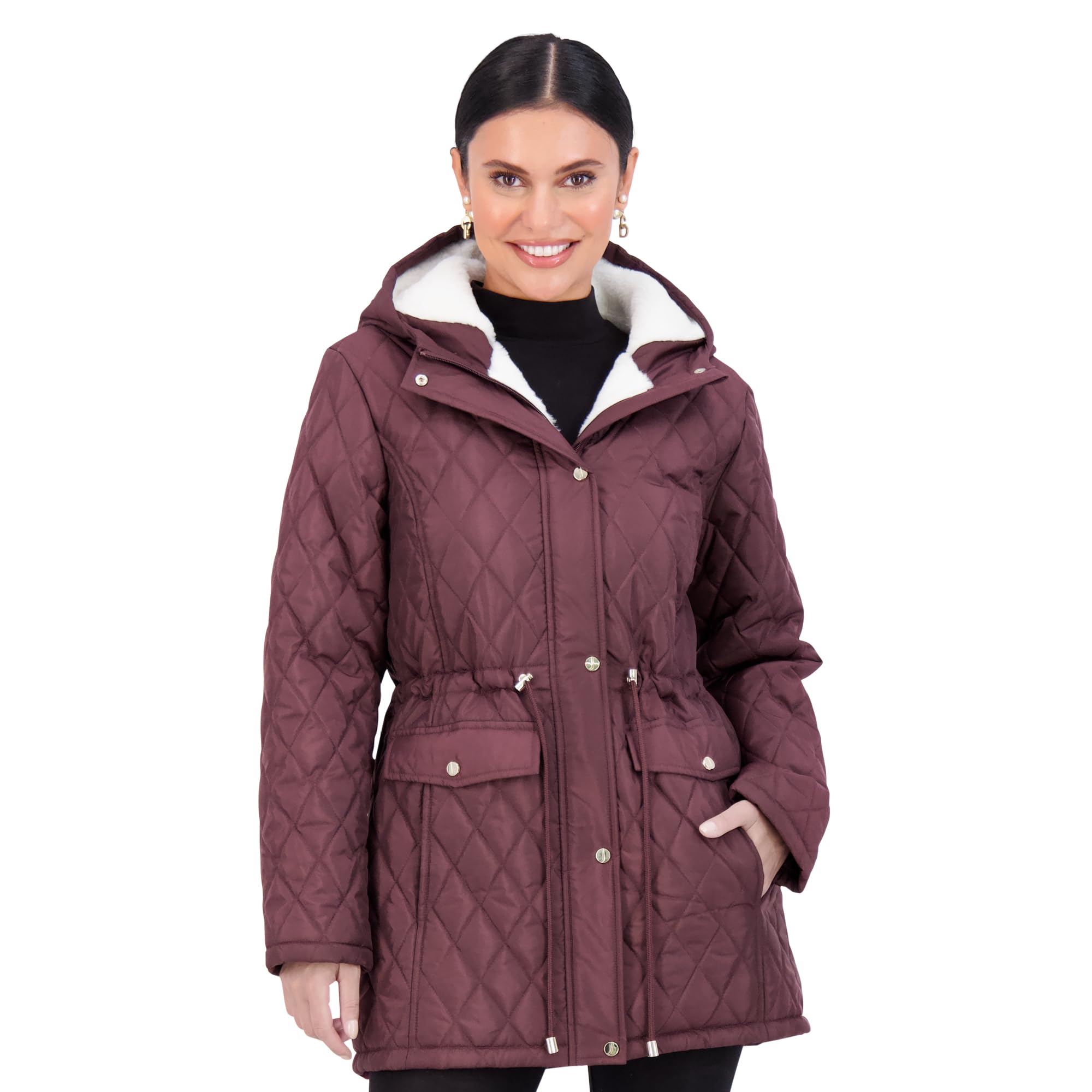Jones NY Diamond-Quilted Jacket Anorak with Fur Lining - Winter Coats for Women, Black|Clothing