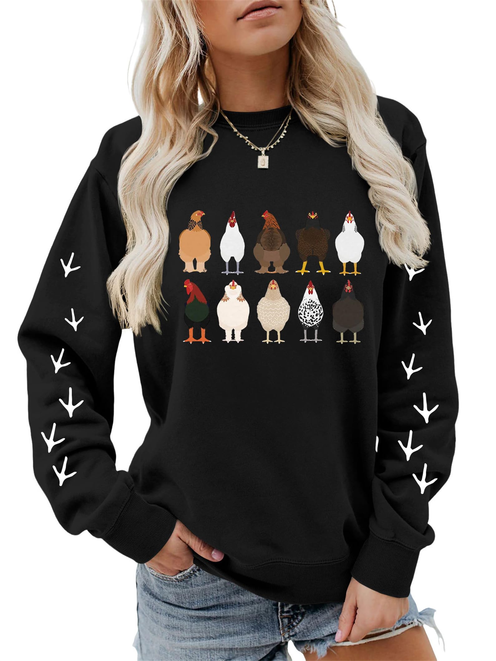 Pifnxtamy Sweatshirt for Women Chicken Mom Graphic Blouse Crewneck Long Sleeve Pullover Farm Shirt Fall Preppy Clothes|Clothing