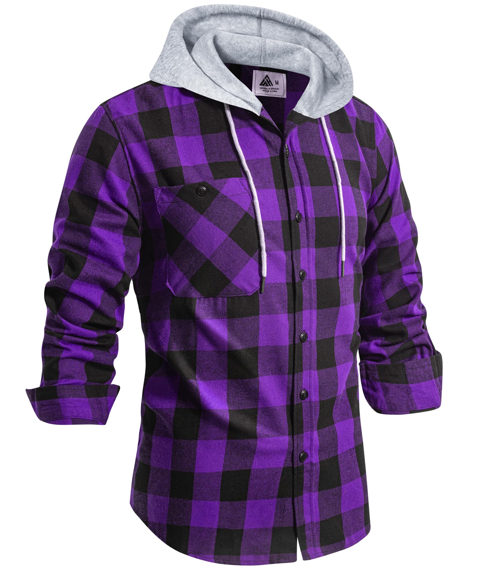 Men's Flannel Shirt Plaid Hoodie Stylish Long Sleeve Fall Casual Button Down Western Shirts with Flat Pocket|Clothing