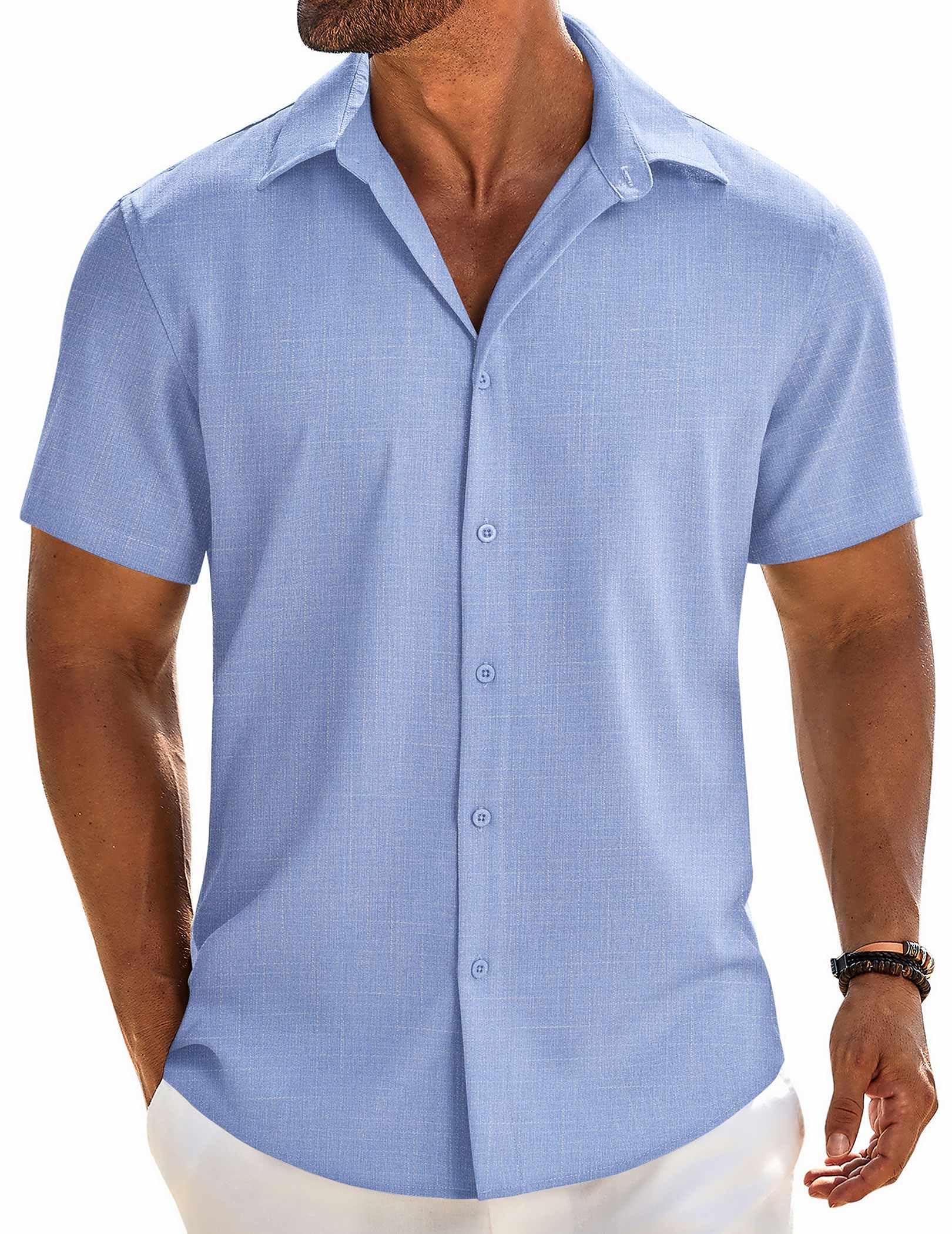COOFANDY Men's Linen Shirts Short Sleeve Button Down Shirt Casual Beach Summer Shirts Wedding Vacation Shirt|Clothing