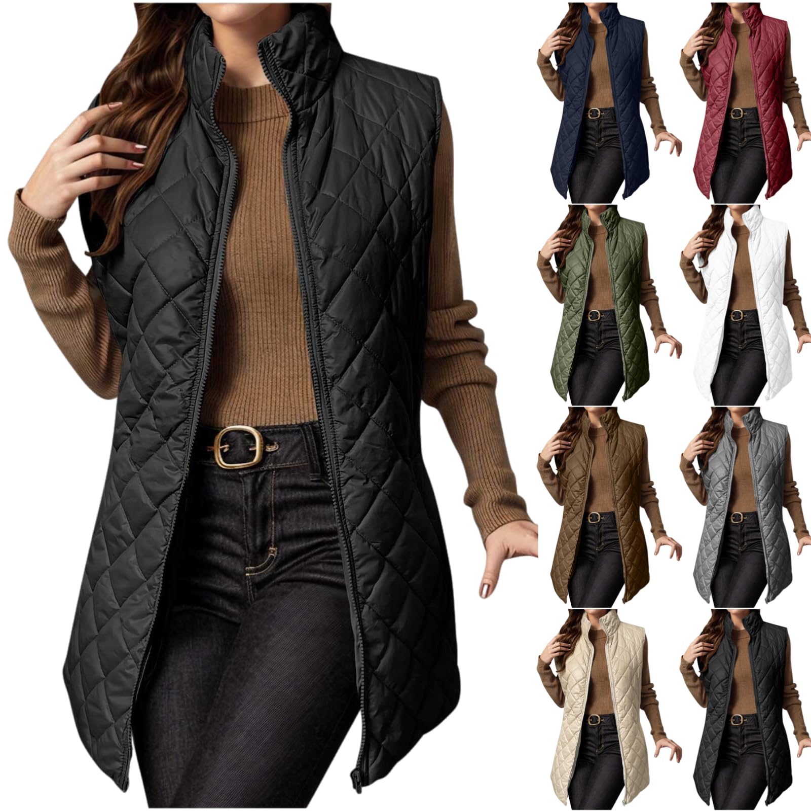 jxsoyen Long Puffer Vest Women Sleeveless Stand Collar Quilted Vest Winter Warm Zip up Puffer Jacket Fashion Padded Outerwear|Clothing