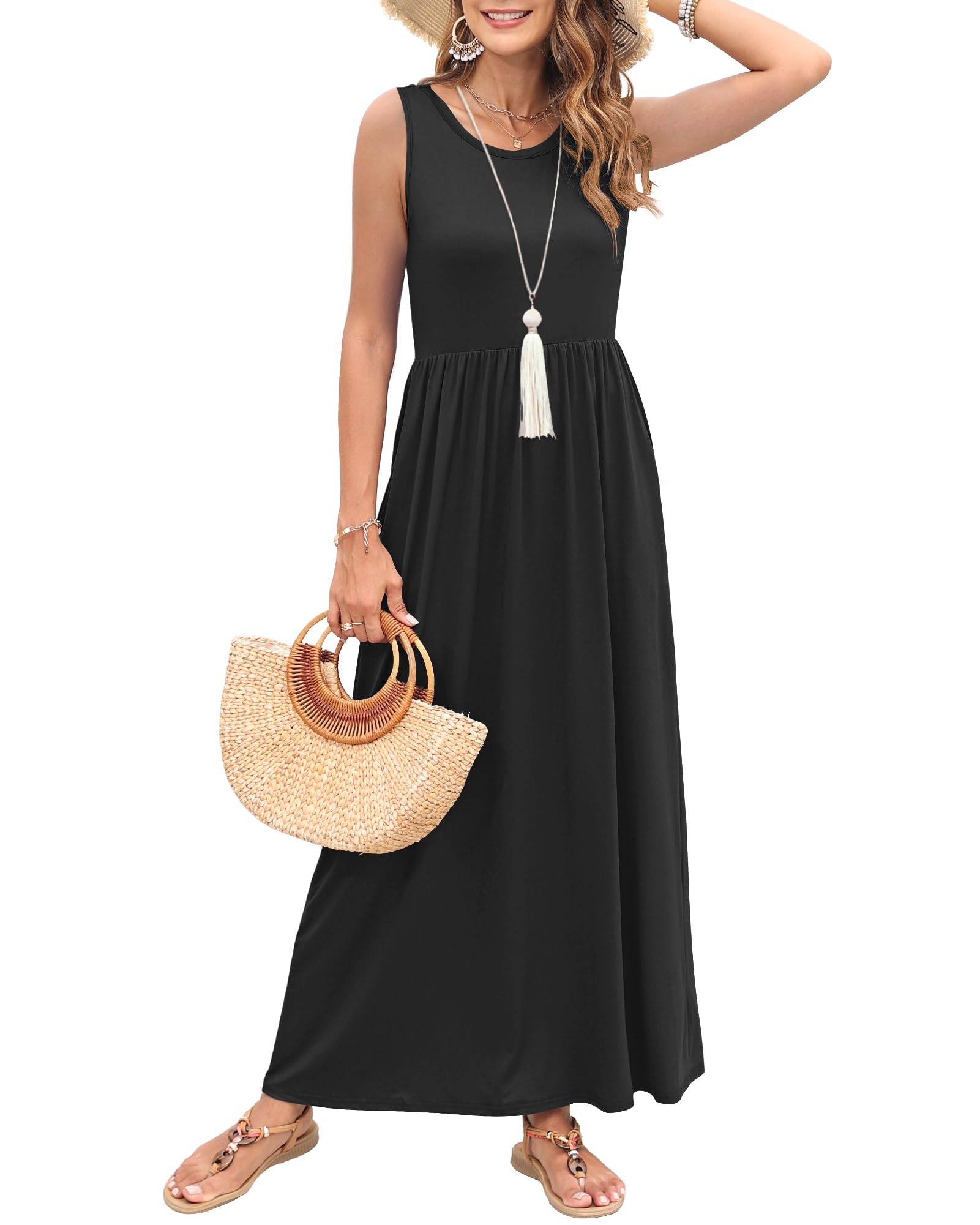 MISFAY Womens Summer Sleeveless Maxi Dress Loose Plain Casual Long Dress with Pockets|Clothing