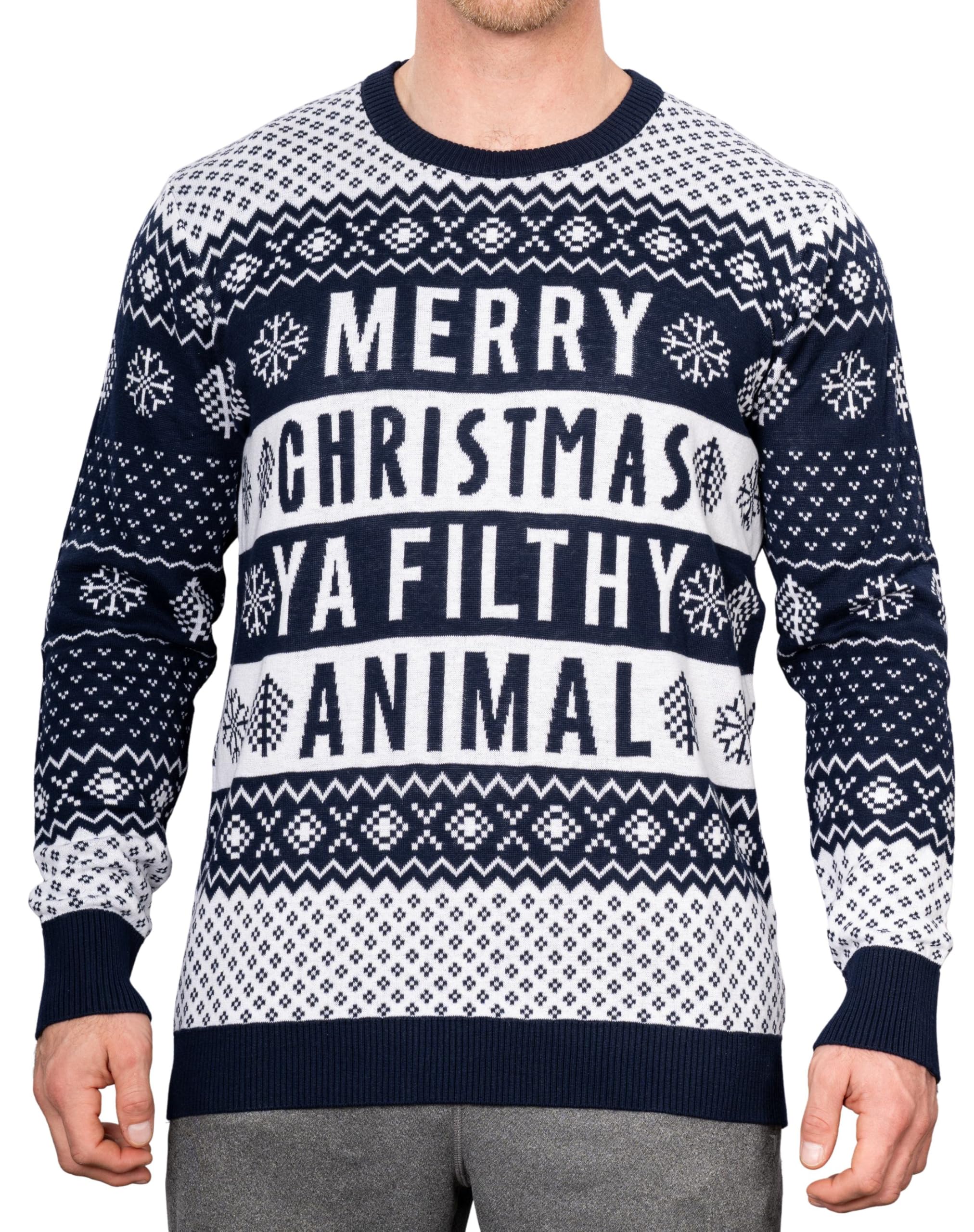 Ya Filthy Animal Merry Christmas Snowflakes Pattern Adult Ugly Christmas Sweater Festive & Fun Holiday Sweater|Clothing