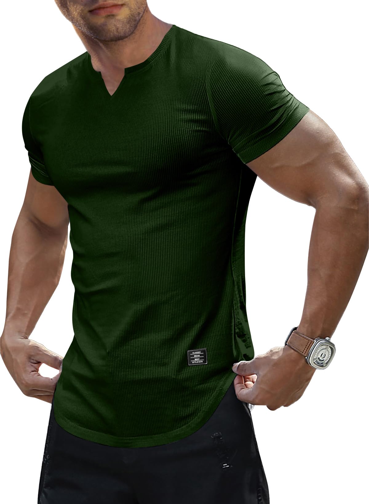 JMIERR Mens Muscle Slim T Shirts Texture V Neck Longline Henley Gym Workout Athletic Tee Shirt|Clothing