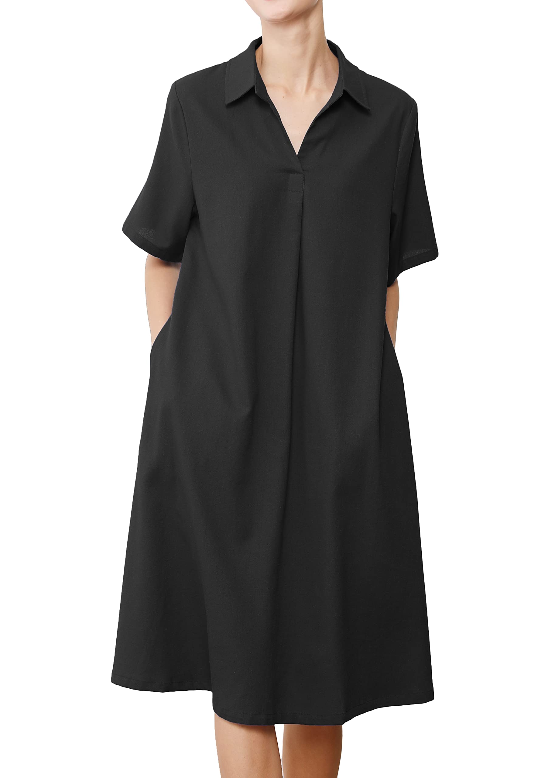 Minibee Women's Linen Shirt Dress Plus Size V Neck Short Sleeve Casual Summer Swing Midi Dresses|Clothing
