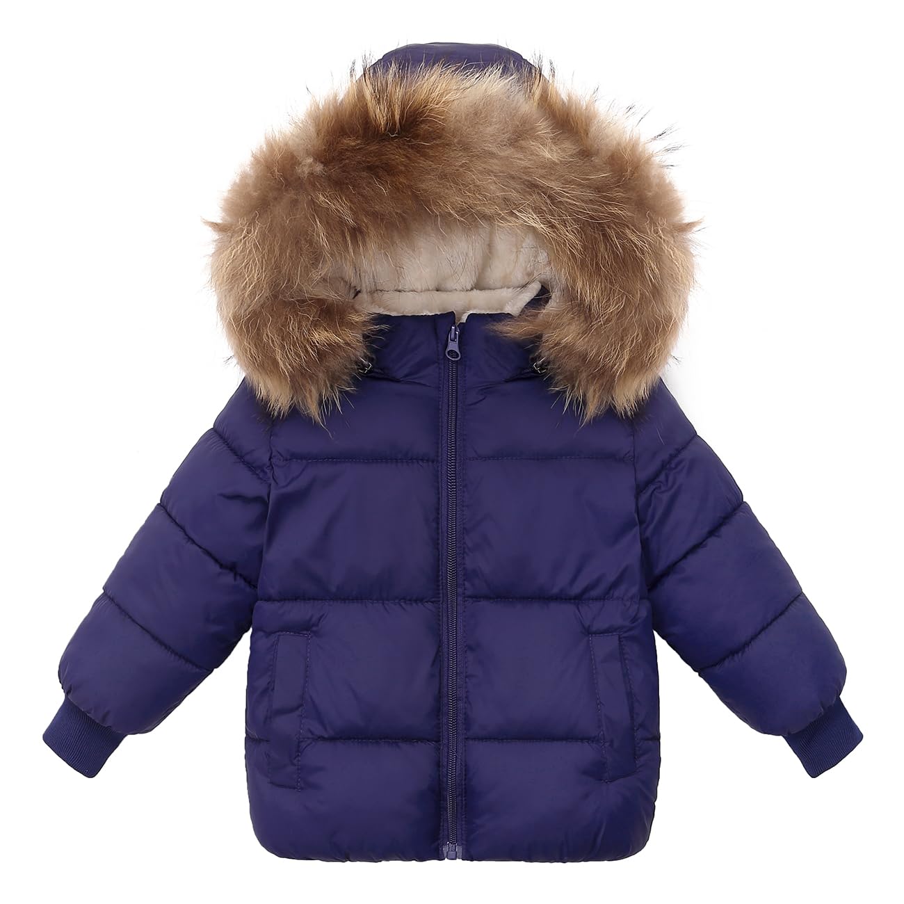 Srkrando Baby Boy Winter Coat Toddler Girl Hooded Puffer Jacket Fur Collar Down Outerwear|Clothing