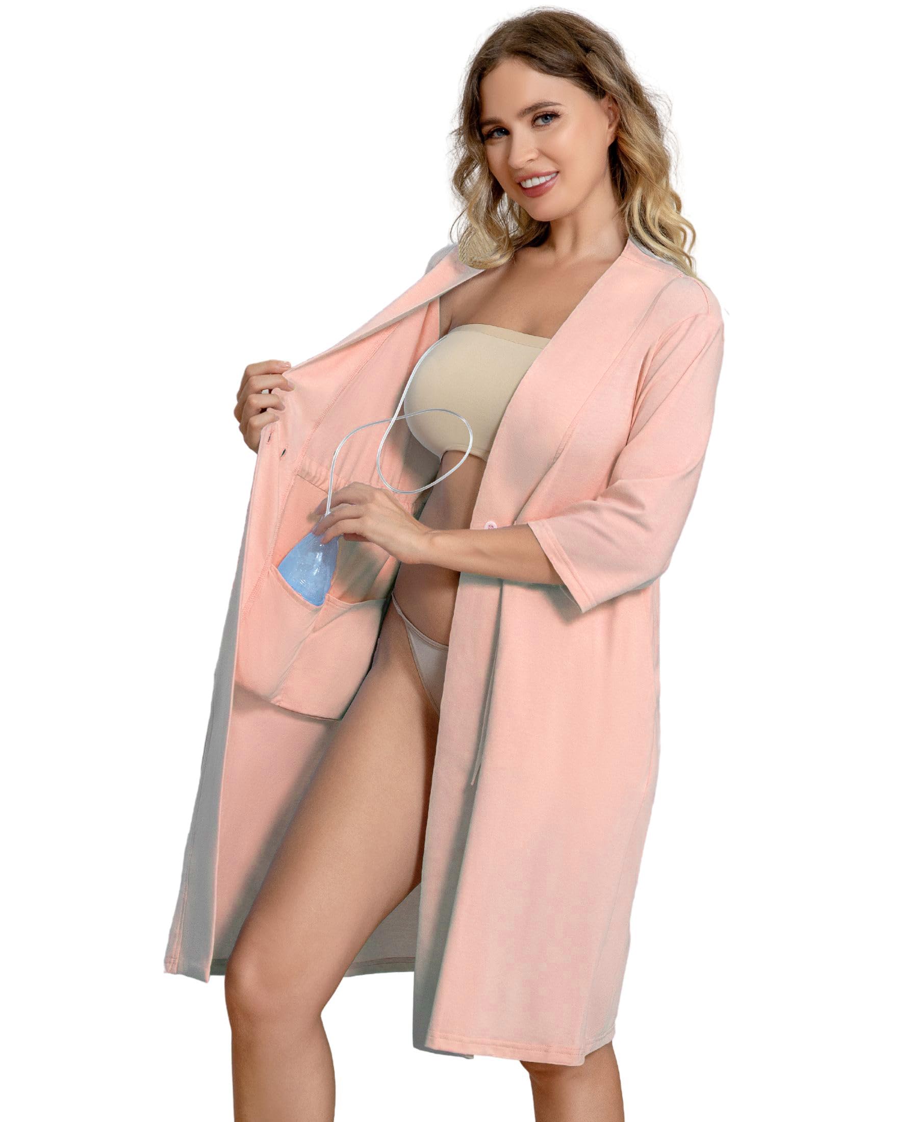 Meuponc Post Surgery Mastectomy Robe with 4 Internal Drain Pockets Women 3/4 Sleeves Night Gowns Pajama Dress Shirts|Clothing