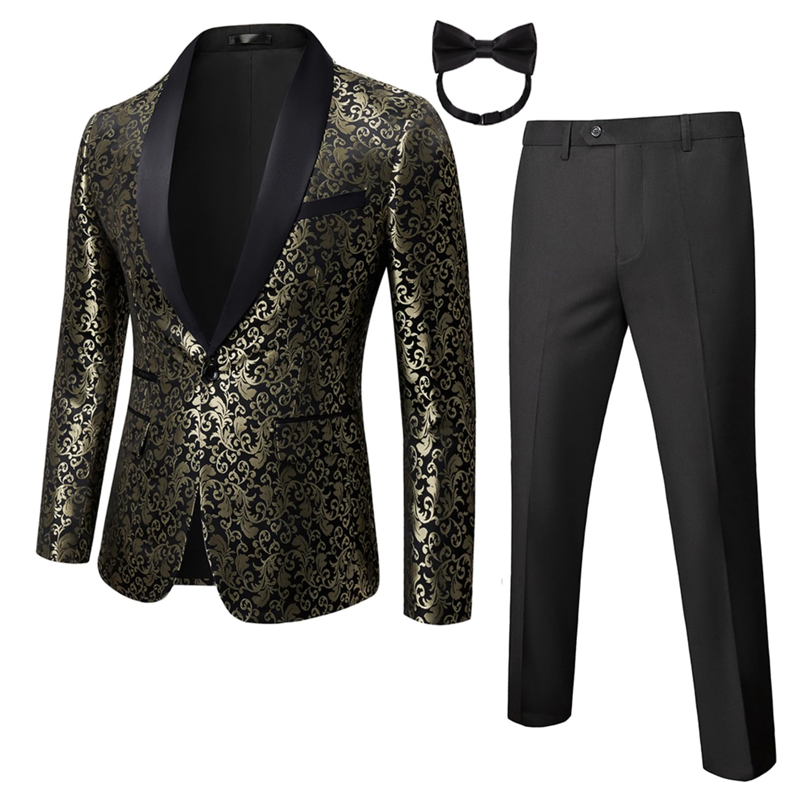 Mgnaie Men Black Suit Floral Tuxedo for Prom Wedding Party Dress Suit Jacket Pants 2 Piece Slim Fit Shawl Lapel|Clothing