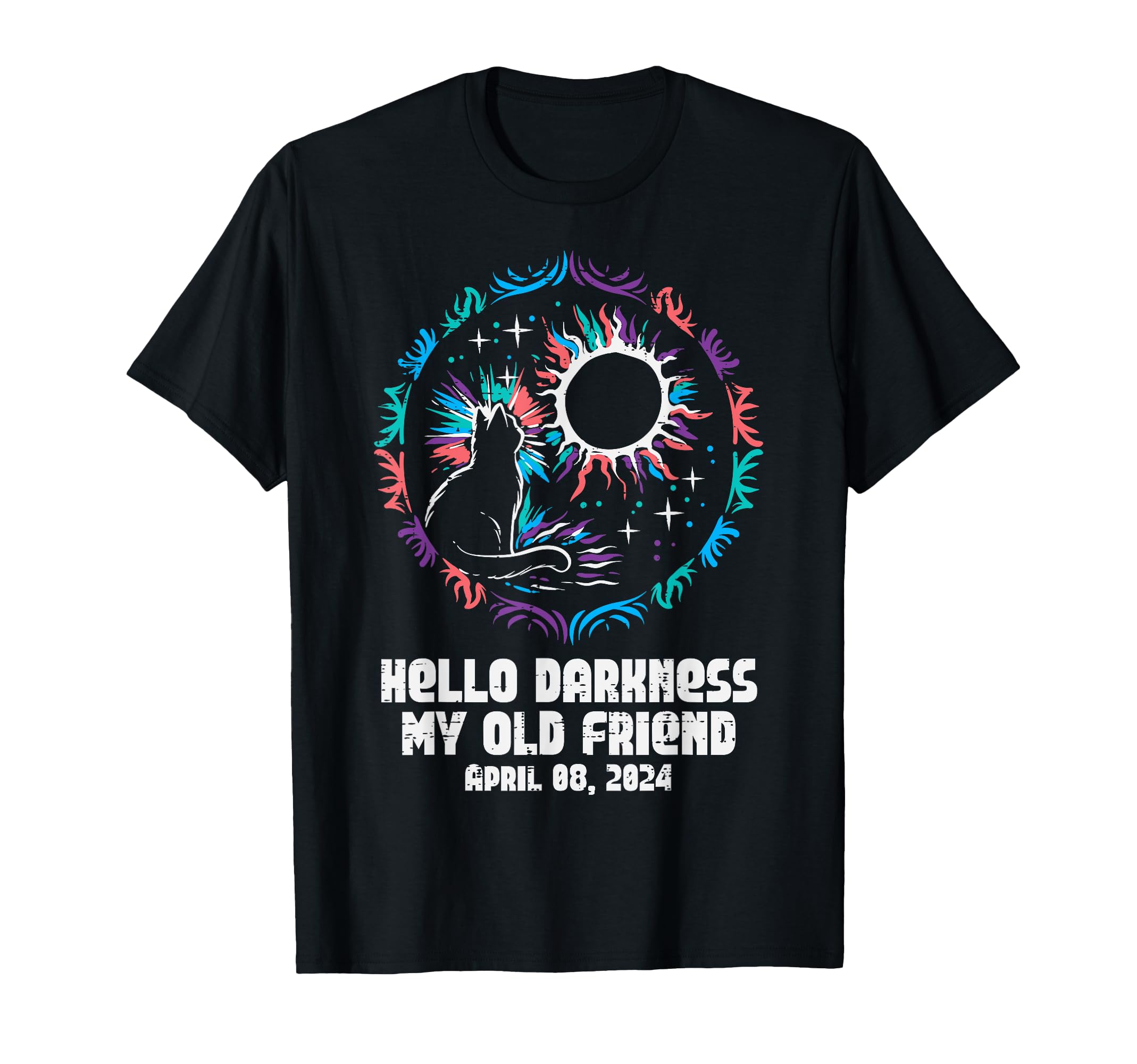 Solar Eclipse Cat Hello Darkness April 8 Women Girls Kids T-Shirt|Clothing
