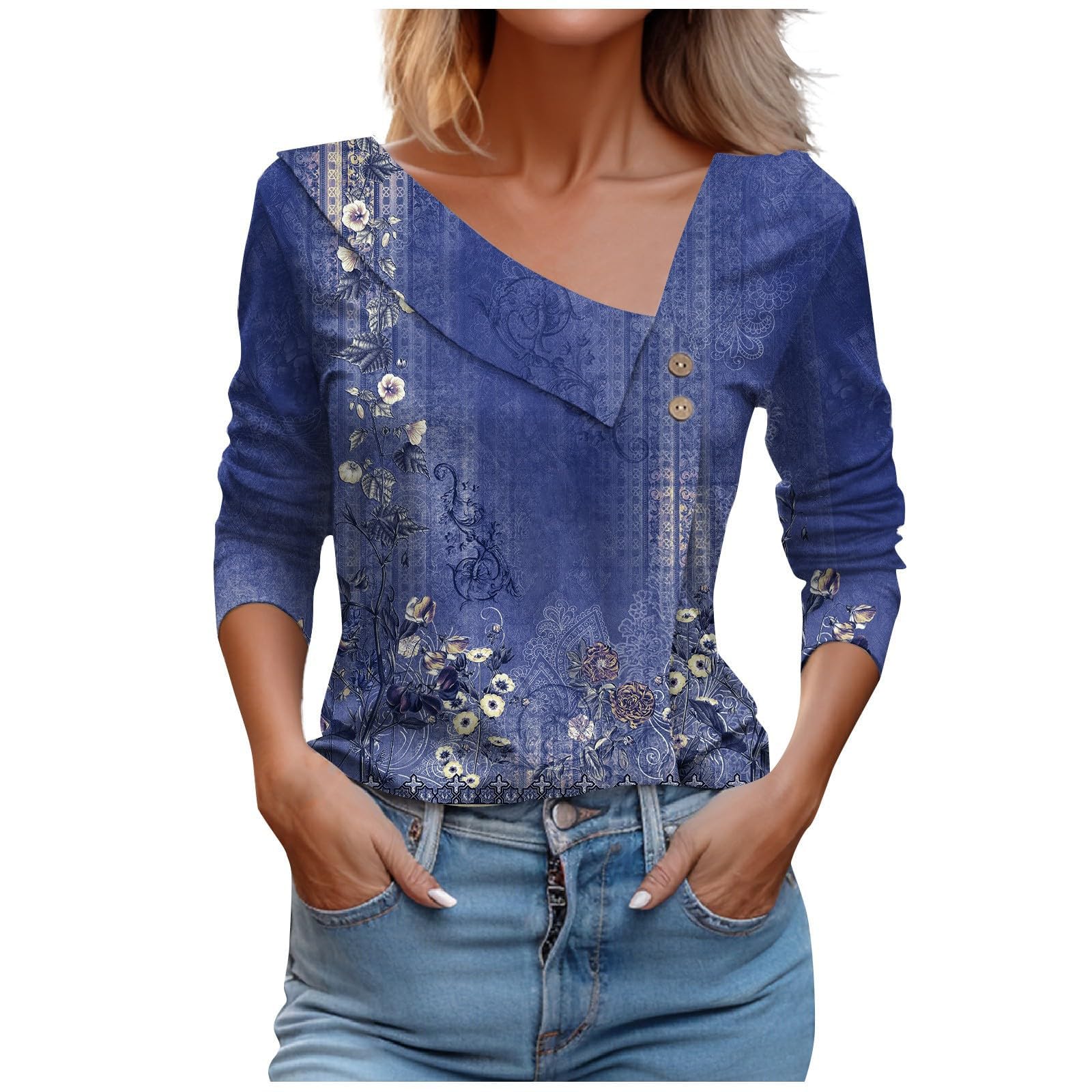 LRMQS Spring Tops for Women 2024 Trendy Casual Long Sleeve Asymmetric V Neck Button Blouses Dressy Woman Shirts Clothing|Clothing