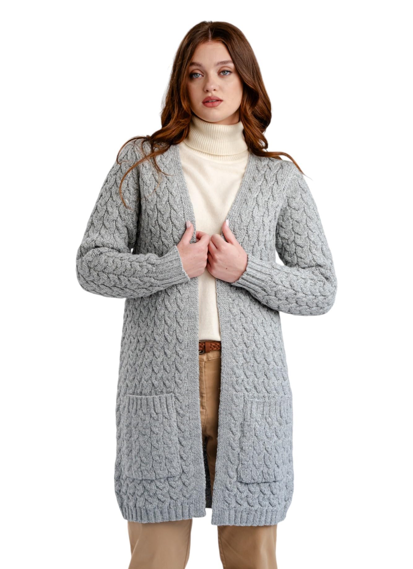 SAOL Aran Coat for Women - Irish Open Front Fisherman Cardigan with Pockets - Merino Wool Made in Ireland|Clothing