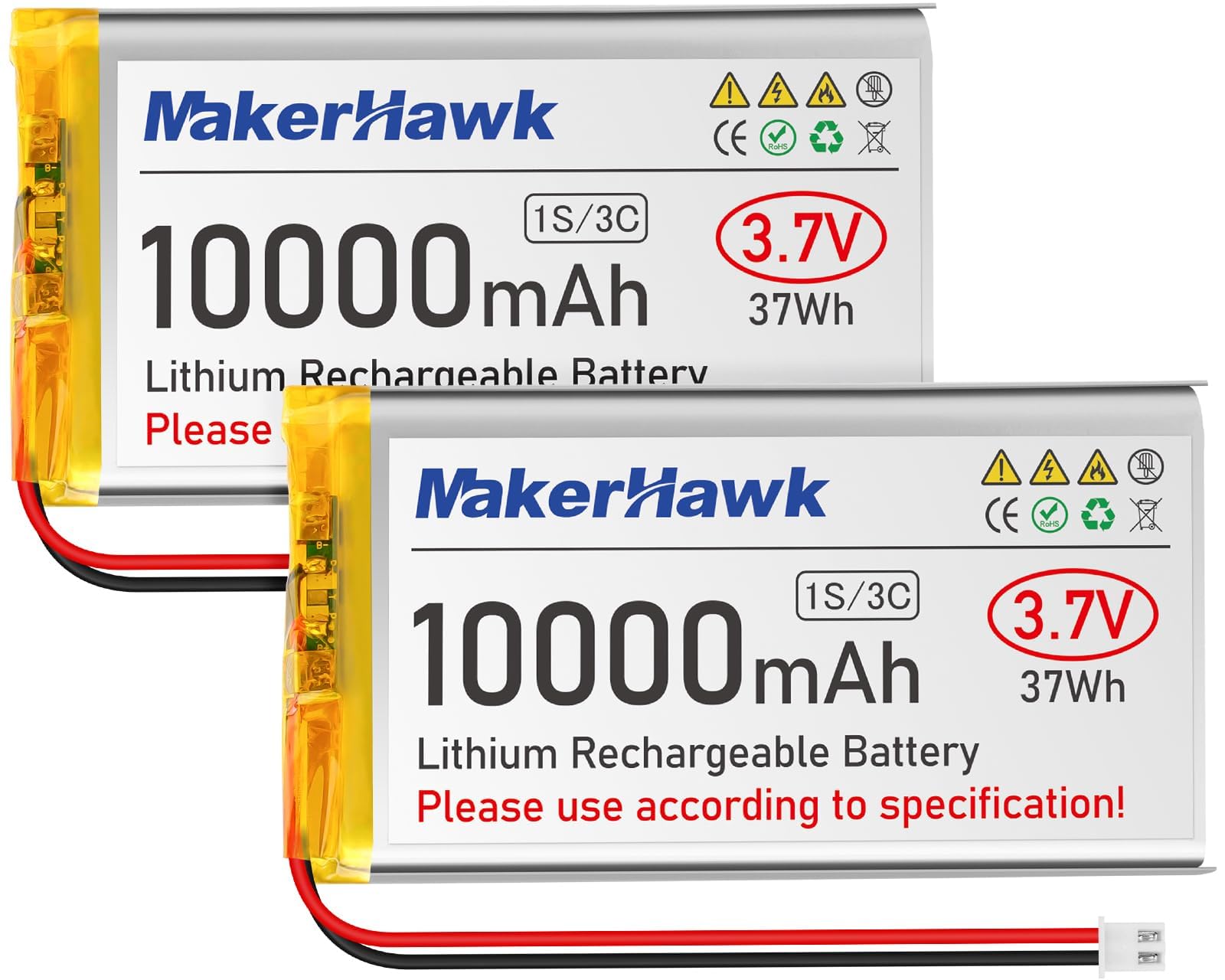 MakerHawk 3.7V LiPo Battery 10000mAh 1163115 Rechargeable 1S Polymer Battery with Protection Board Insulated Rubber Tape, JST 2.54 Connector for|Electronics