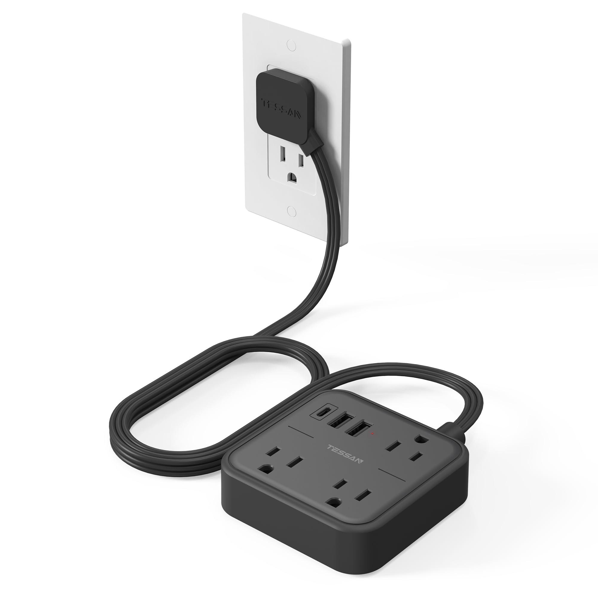 Surge Protector Power Strip, TESSAN Flat Extension Cord 5 FT with USB Ports (1 USB C) and 3 Outlets, Ultra Thin Flat Plug Wall Charger for Home,|Electronics