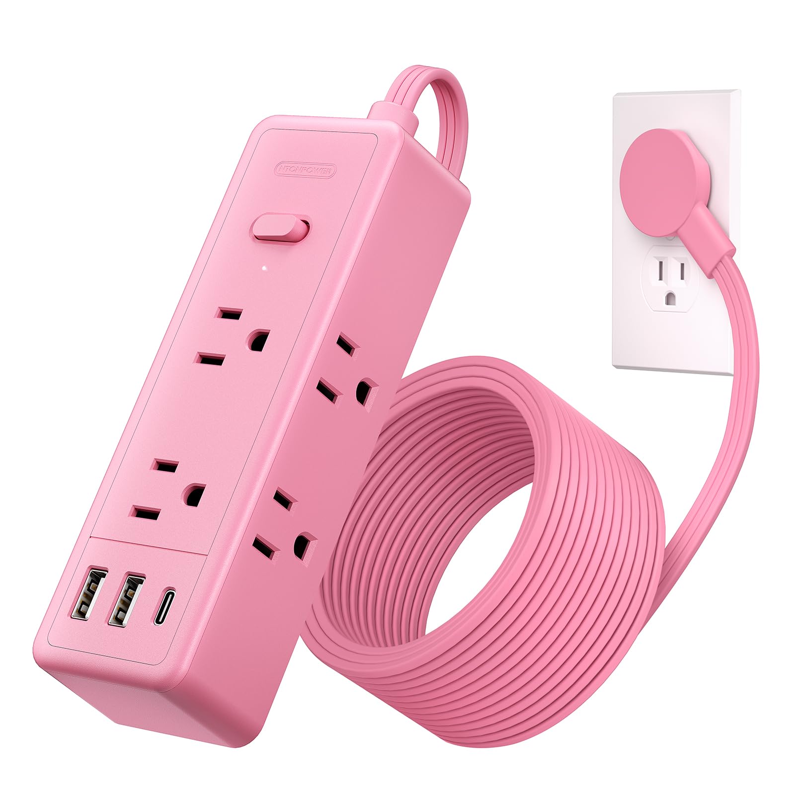 NTONPOWER Pink Extension Cord 10 ft, 1080 Joules Surge Protector Power Strip with 6 Widely Outlets 3 USB (1 USB C), Flat Plug Extension Cord Power|Electronics