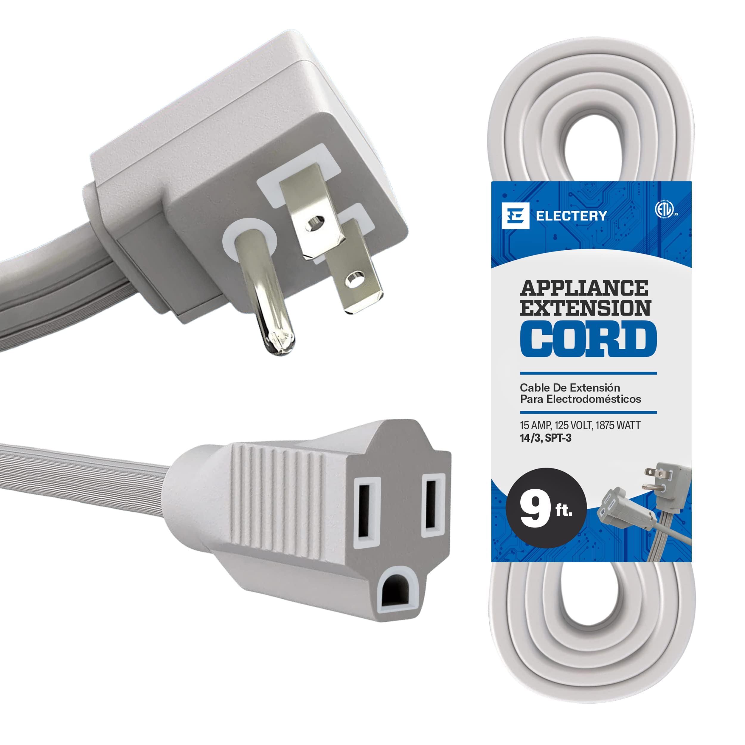 ELECTERY Heavy Duty Appliance Extension Cord, 14/3 ETL Listed, 15A 1875W, Flat Plug for AC, Refrigerator, Washer, Dryer, Gray - 9 Ft|Electronics