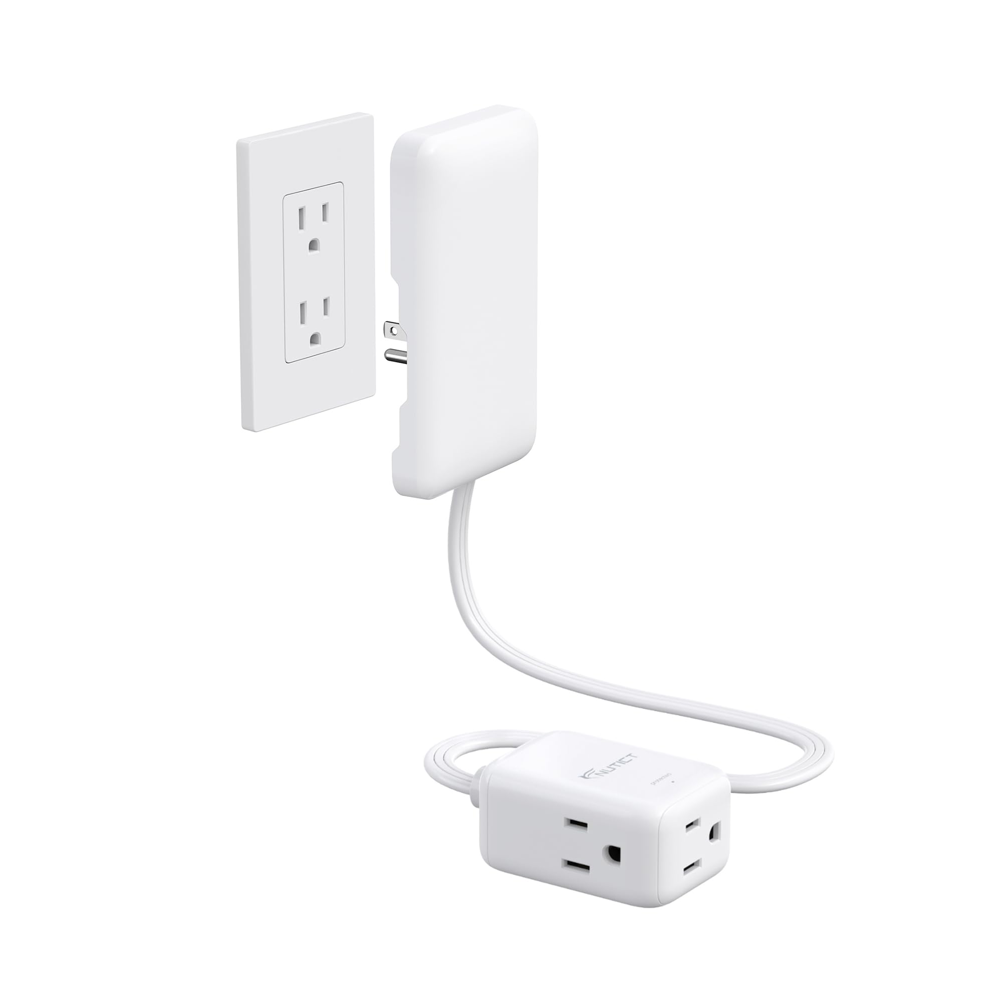 NUTICT 1.5FT Short Flat Extension Cord with 3 Outlets, Flat Wall Plug & Ultra-Thin Outlet Cover, ETL Listed, 13A/1625W, 900J Surge Protection, White|Electronics