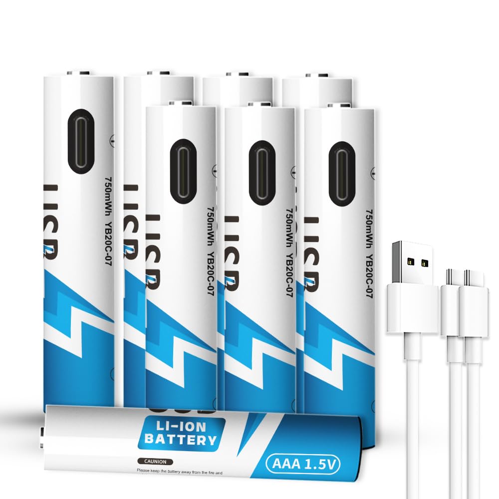 AAA USB Rechargeable Lithium Batteries, Lithium 1.5V 750 mWh, Long Lasting, Charges 1 Hours, 2-in-1 USB-C Charging Cable, 1500 Cycles for Household,|Electronics