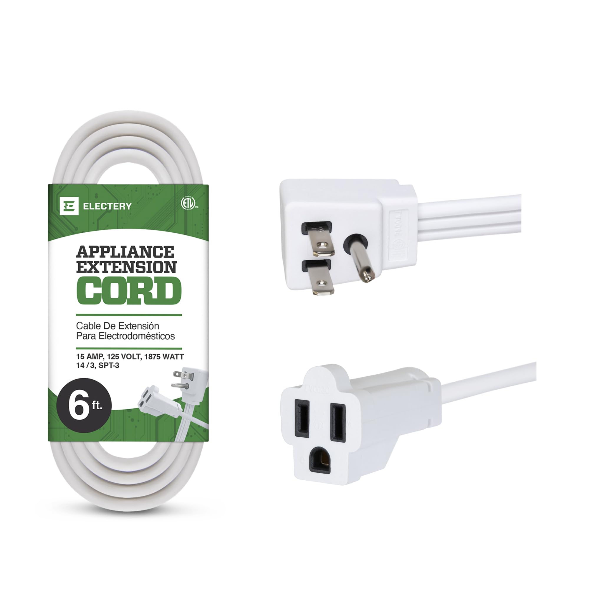 Heavy Duty Appliance Extension Cord, 14 AWG - 3 Prong Grounded Flat Plug, White Power Wire for Indoor Air Conditioner and All Major Appliances, 15|Electronics