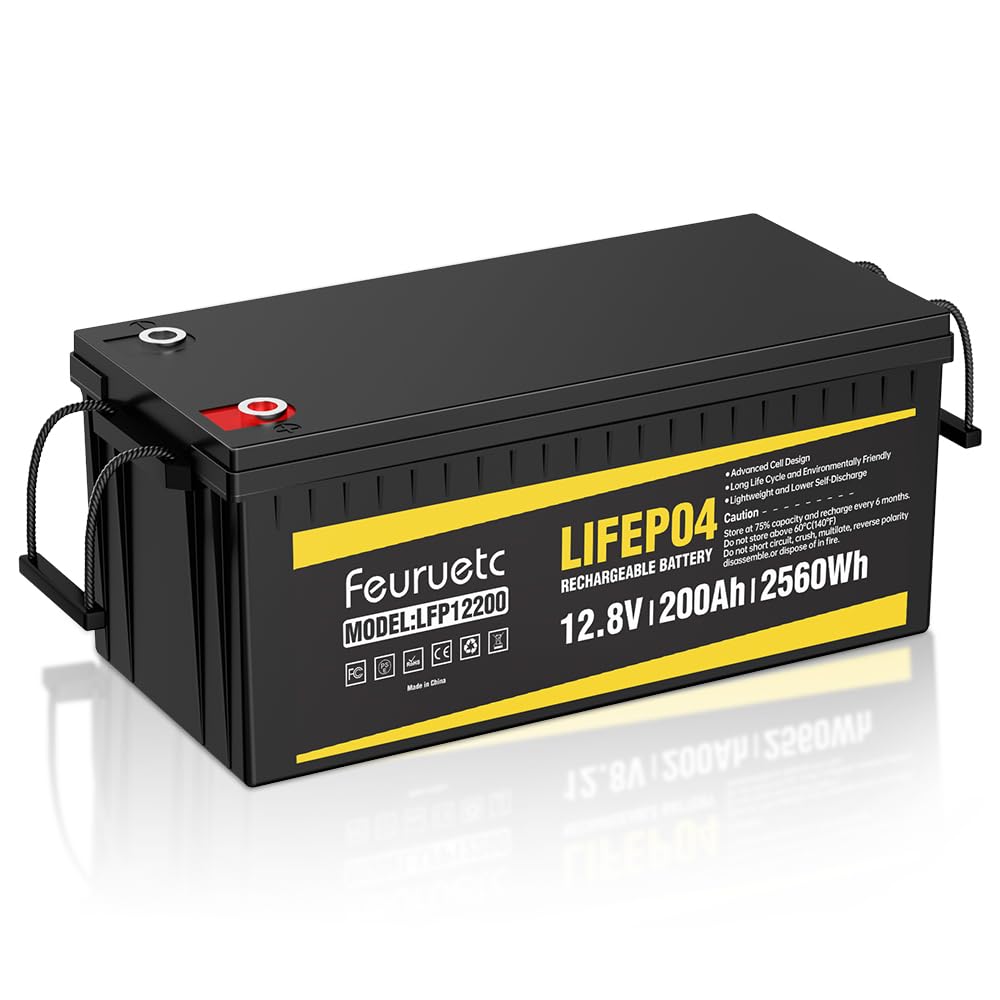 Feuruetc 12V 200Ah Lithium LiFePO4 Battery, Built-in 200A BMS, 2560Wh Energy Storage, Iron Phosphate 8000-15000 Deep Cycles Battery for Solar,|Electronics