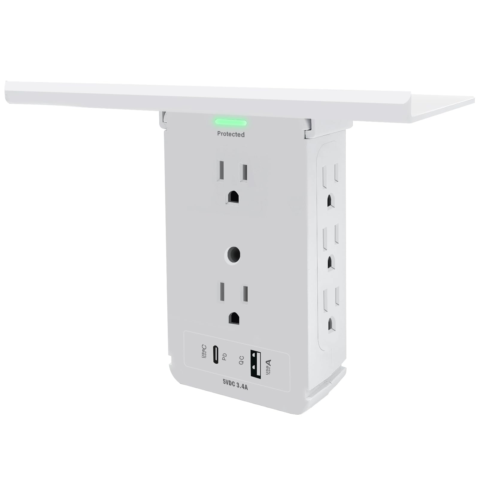 Surge Protector Wall Outlet, 8 Socket Extender with USB-A and USB-C Ports, Removable Built-in Shelf, Wall Mounted Rack, Plug Adapter for Home, School,|Electronics