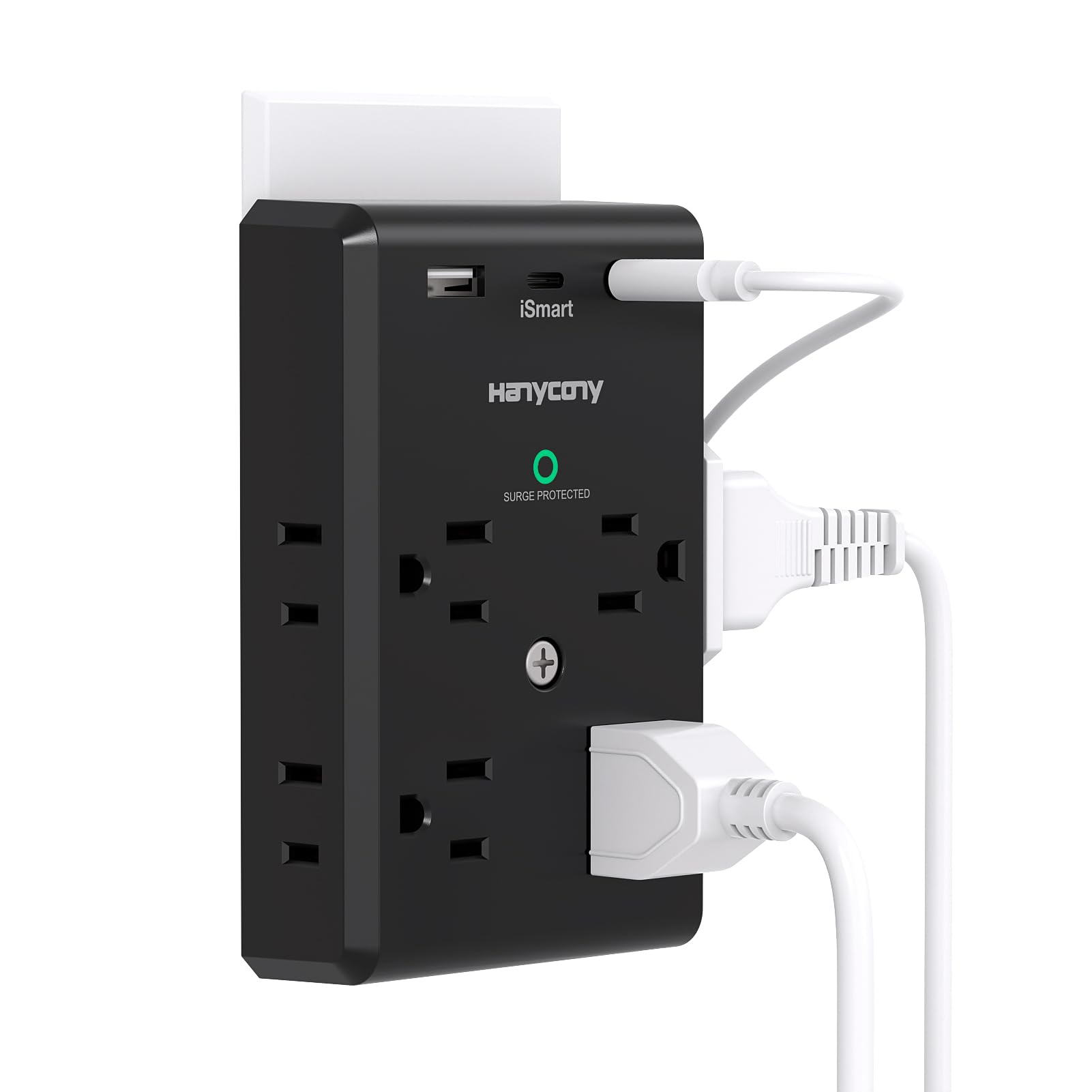 Surge Protector Outlet Extender with USB C Ports, HANYCONY 3 Sided Power Strip with 8 Outlets Splitter and 3 USB Wall Charger, Multi Plug Outlet for|Electronics