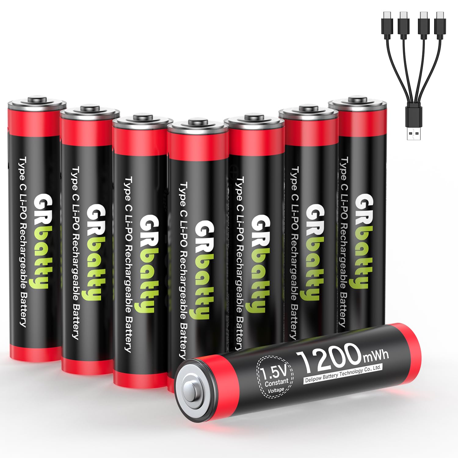 GRbattyUSB Rechargeable AAA Batteries Lithium Triple A, 4-in-1 USB-C Charging Cable LED Charge Indicator 1700mWh 1.5V Charges 1 Hours, Over 1500|Electronics