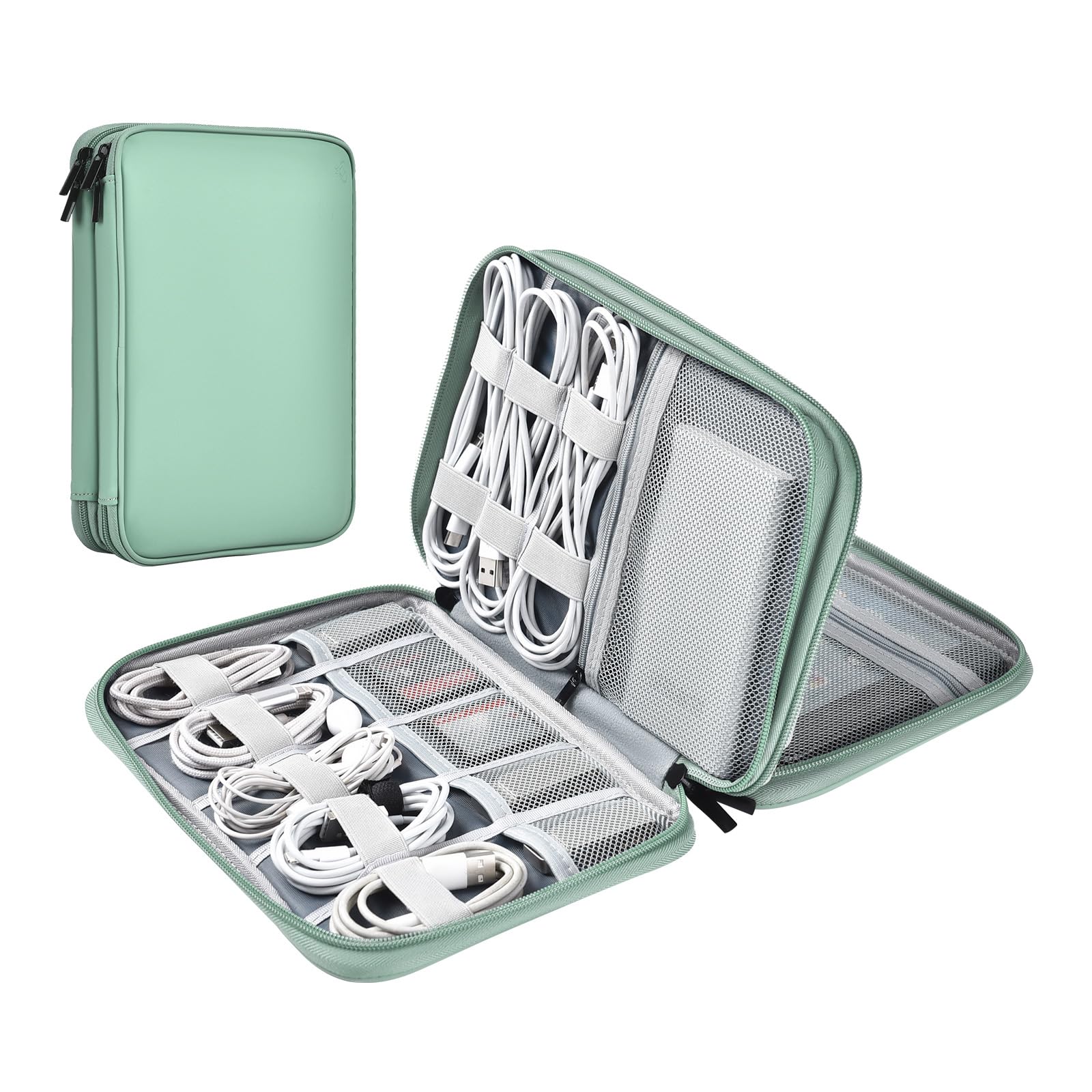 Miloocul Leather Cord Organizer Bag - Portable Tech Organizer Travel Case for Charger & Electronic Accessories (Light Green, Double Layer-Small)|Electronics