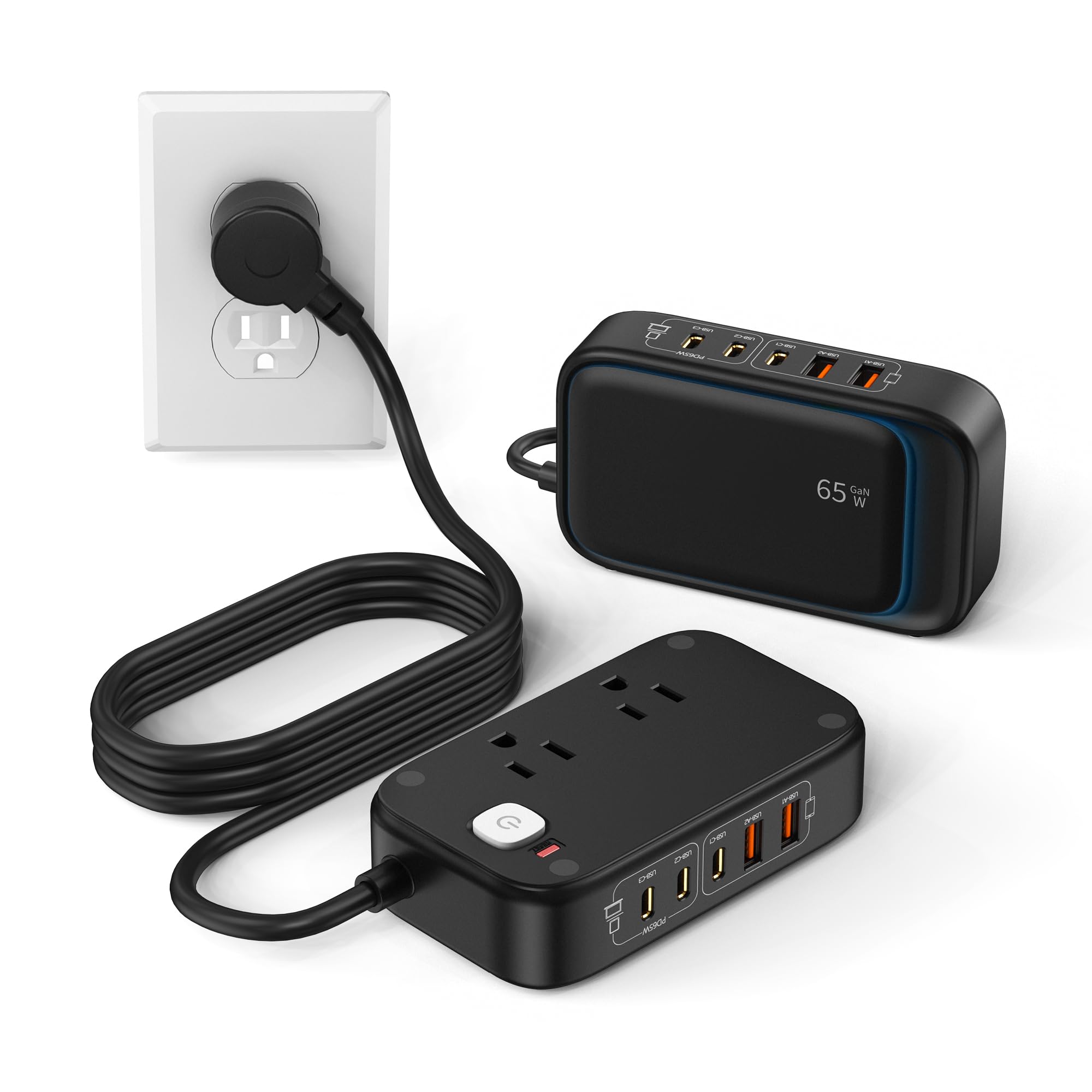 KWRNVO 7-in-1 Power Strip, 85W PD USB C Power Strip with 3 USB-C, 2 USB-A Ports and 2500W AC Outlet, Flat Plug Essentials for Home/Office/College/|Electronics