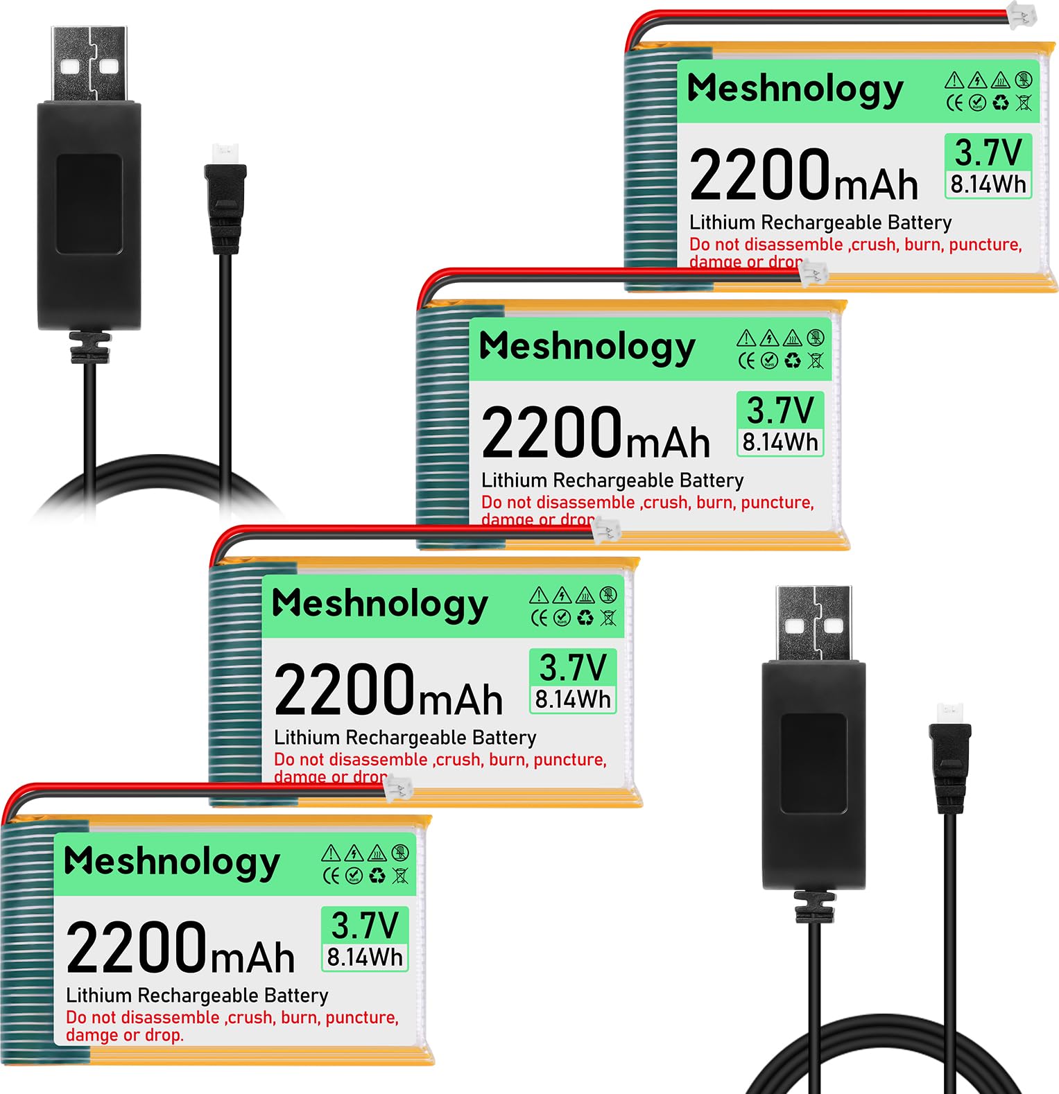 Meshnology 4PCS 3.7V 2200mAh Li Battery with USB Charger Cable 903659 1S LiPo Battery with Protection Board Insulated Rubber Tape and Micro JST 1.25|Electronics