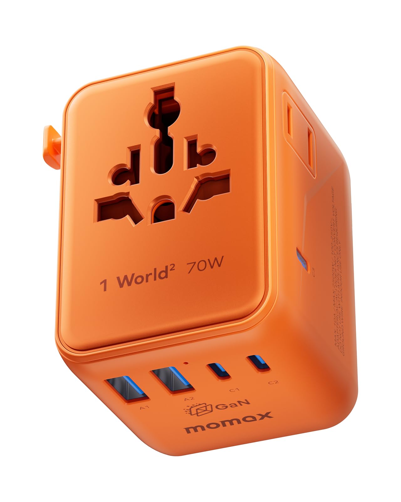 MOMAX Mini 7-in-1 Universal Travel Adapter, GaN 70W Dual AC, 3 USB-C PD & 2 USB-A QC, International Power Charger for 200+ Countries – Compact Travel|Electronics