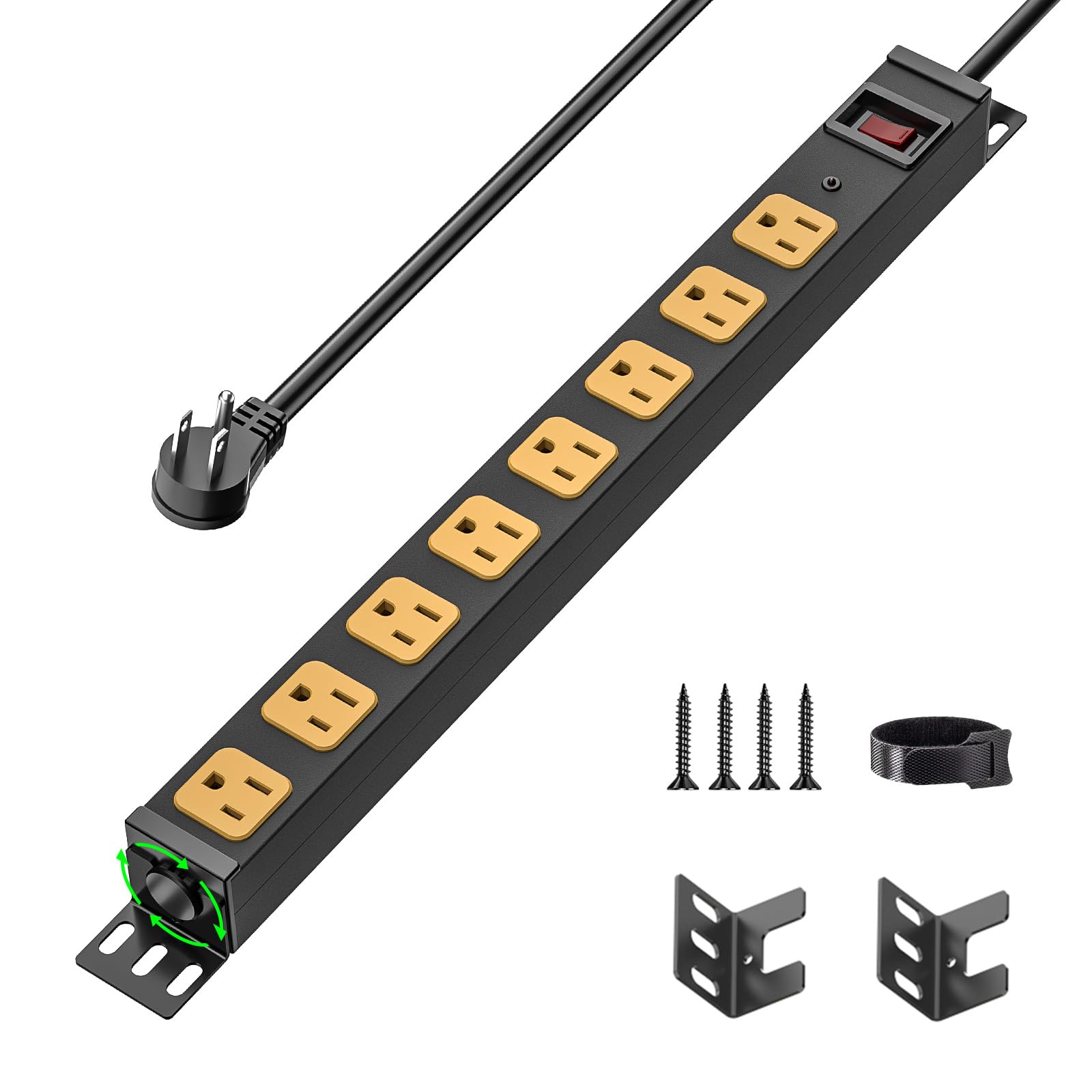 CRST 8 Outlet Heavy Duty 360° Rotating Mountable Power Strip, 2100 Joules Surge Protector Power Strip, 15Amp/1875W Garage Shop Home Power Bar with 6FT|Electronics